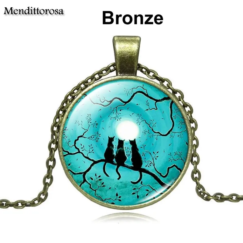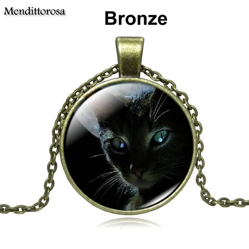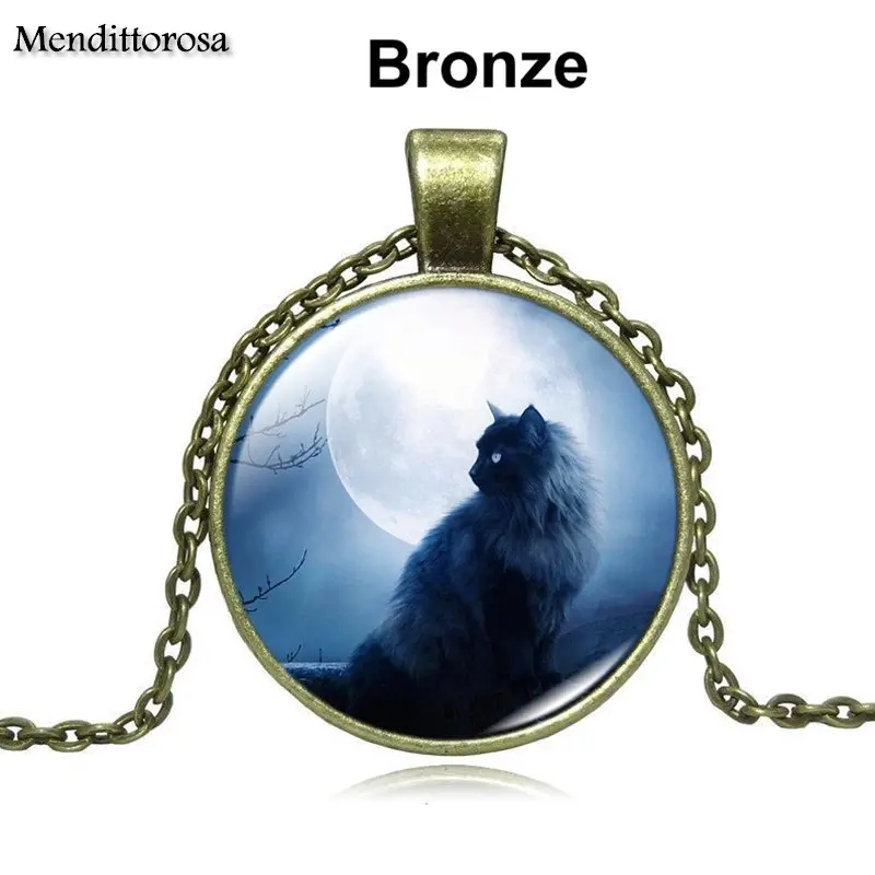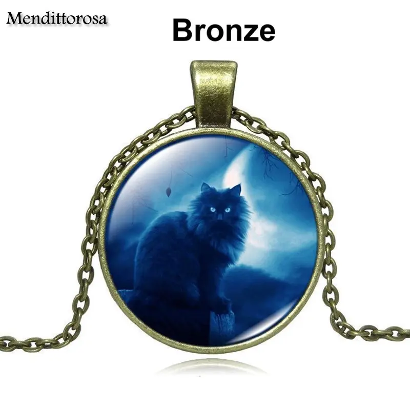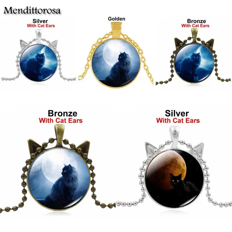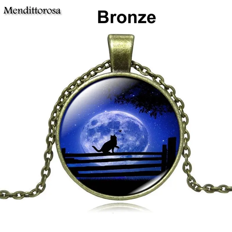 Длинное ожерелье-чокер с серебряным покрытием изображением голубой луны черного