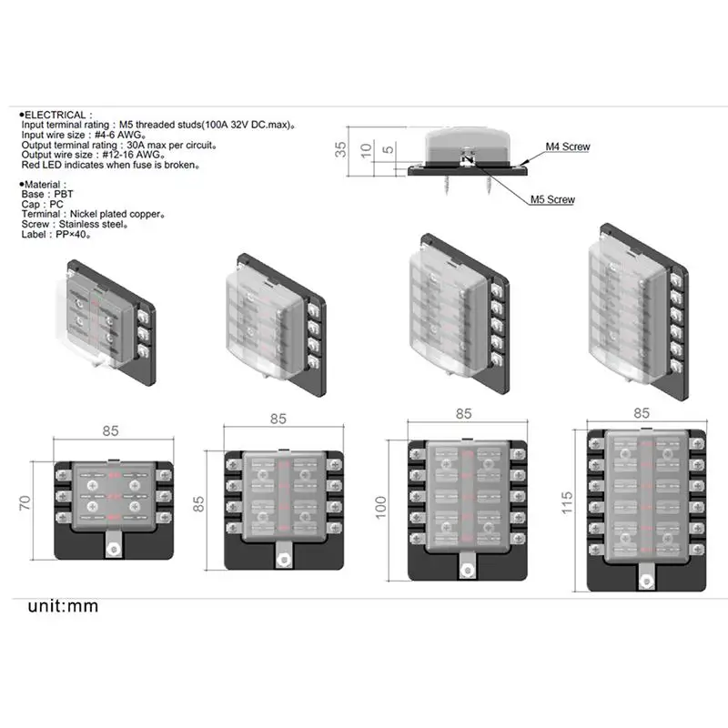 Держатель коробки предохранителей с светодиодным предупреждающим индикатором 12 способов влагостойкий блок предохранителей для автомобильного винтового терминала