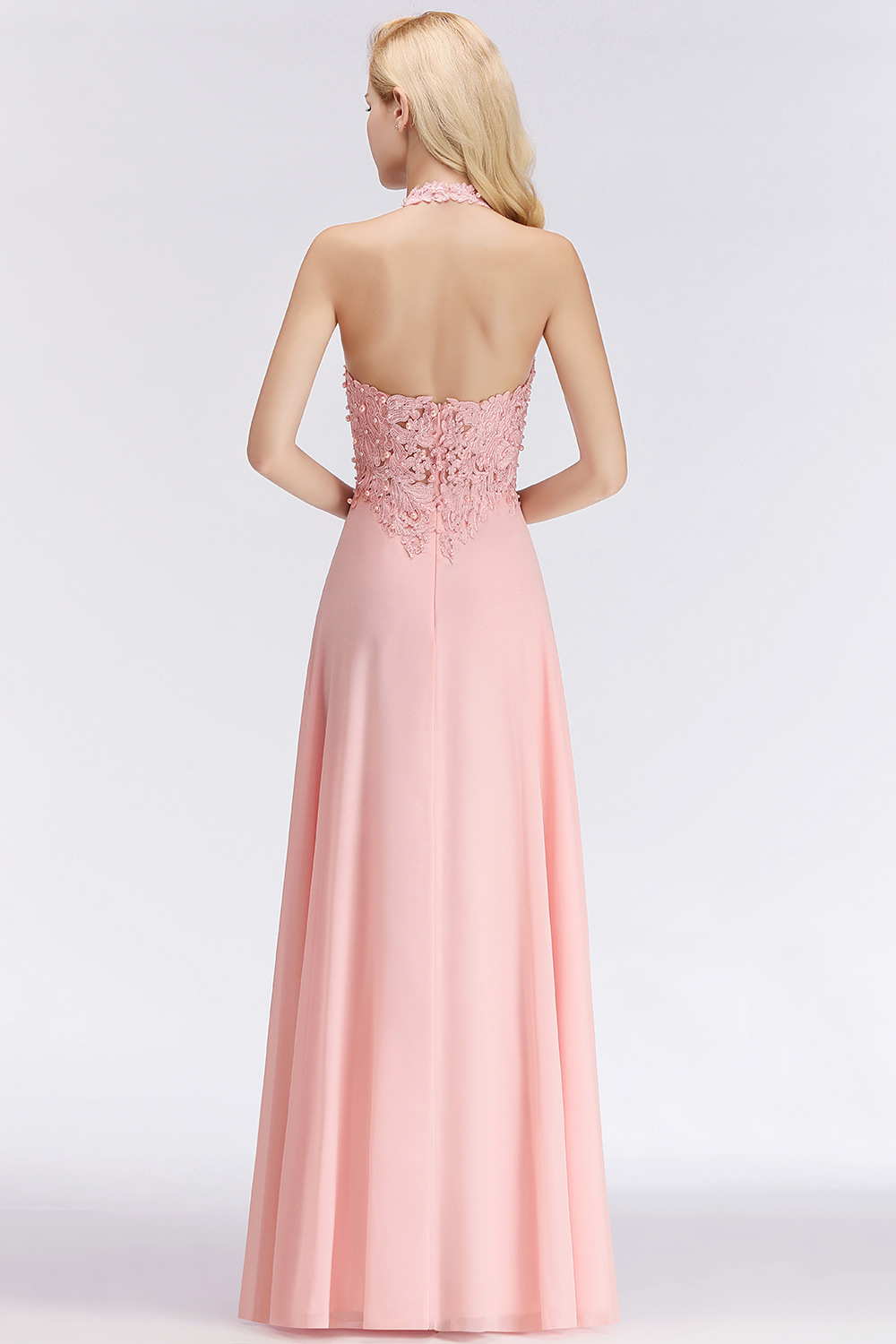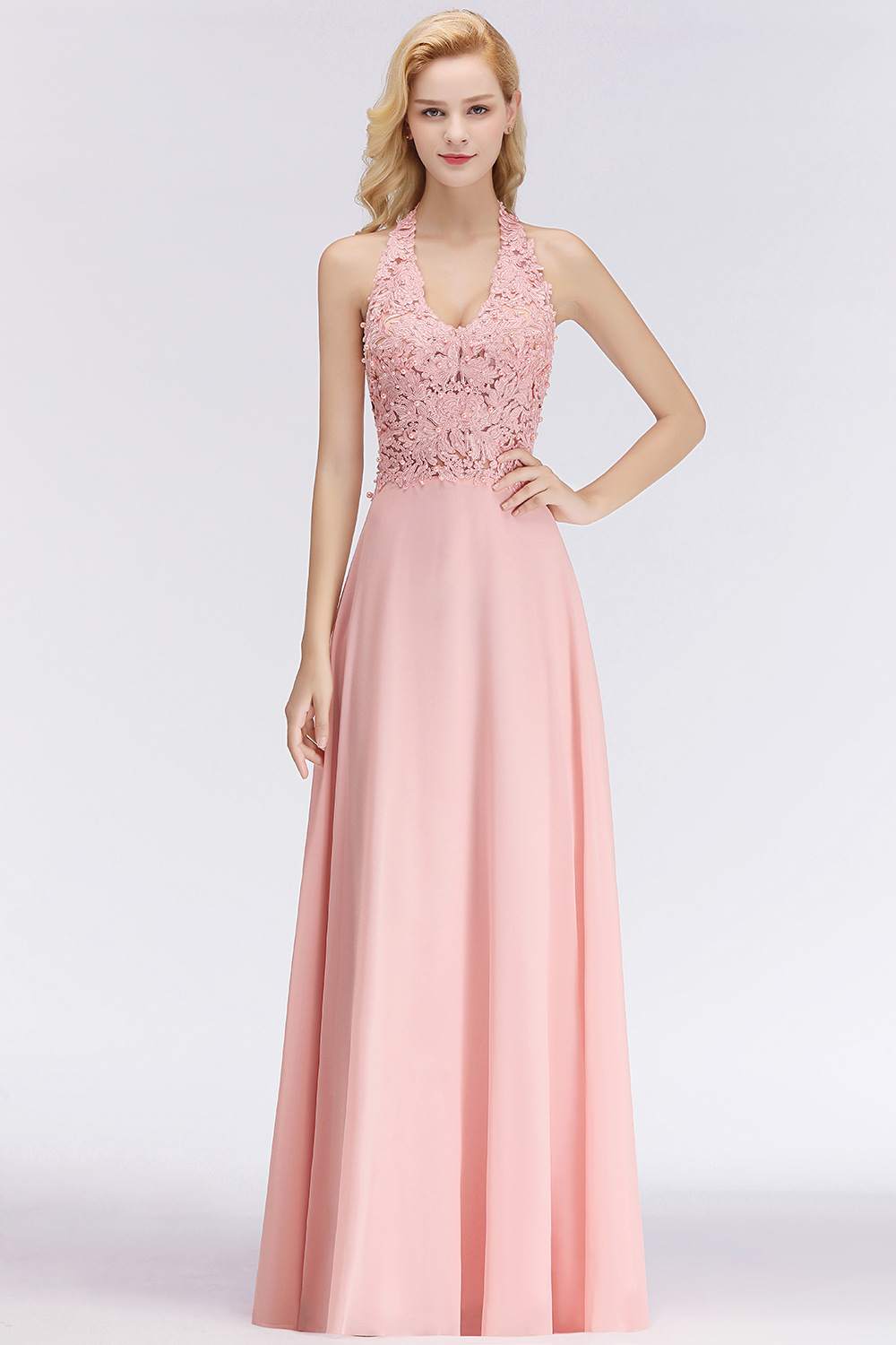 Женское платье для выпускного вечера длинное розовое трапециевидной формы с