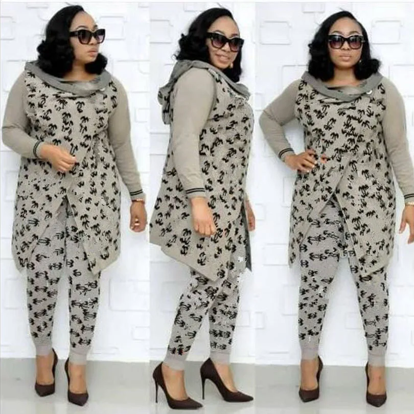 Африканский женский Зимний вязаный пуловер ручной работы с бисером и блестками, с длинными рукавами, топы, брюки, комплекты одежды из 2 предметов