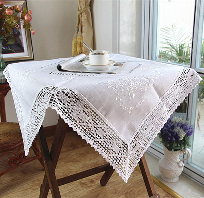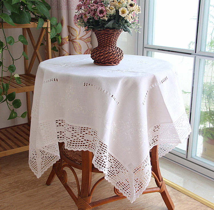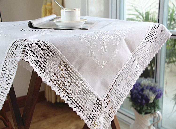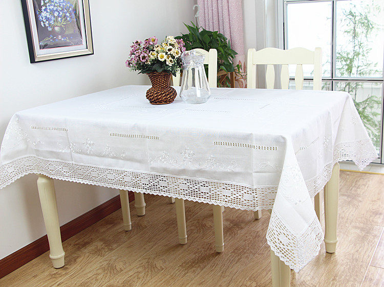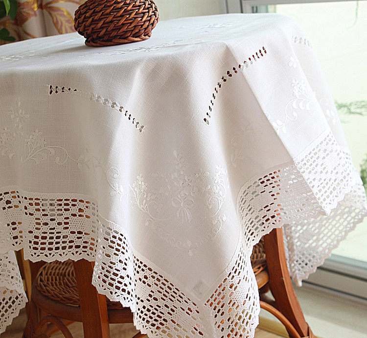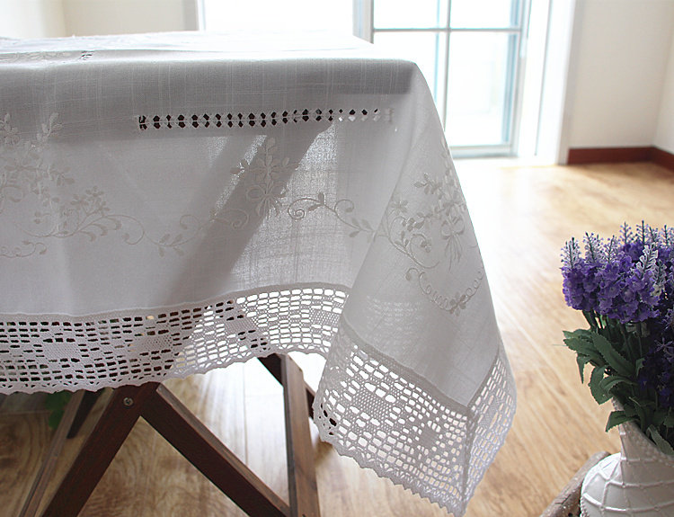 Американская белая кружевная скатерть для столовой, ручная пряжа, вышитая скатерть из хлопка и льна, скатерть для холодильника, ТВ-крышка