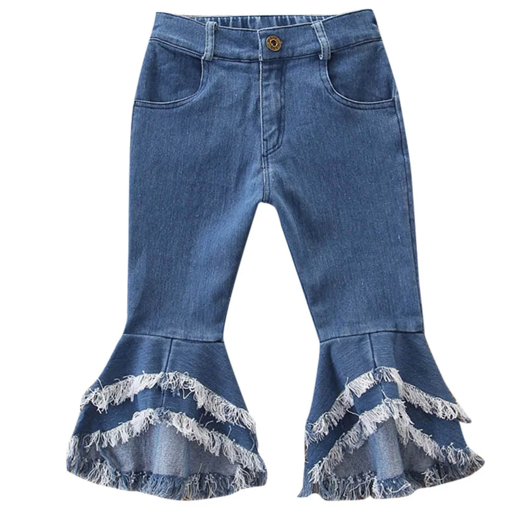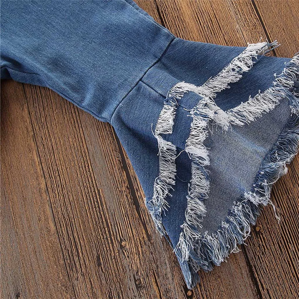 Детские джинсовые расклешенные брюки для маленьких девочек; одежда с кисточками; джинсовые брюки