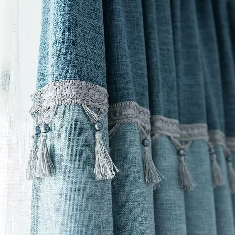 Шторы для гостиной с вышивкой синие пионы шениль роскошные европейские