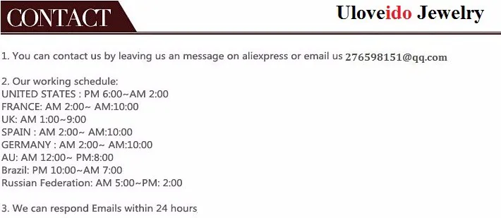 О: Да, мы предлагаем прямую доставкуНо перед тем, как вы внесете в список Uloveido фирменные ювелирные изделия, пожалуйста, получите от нас разрешение бренда.