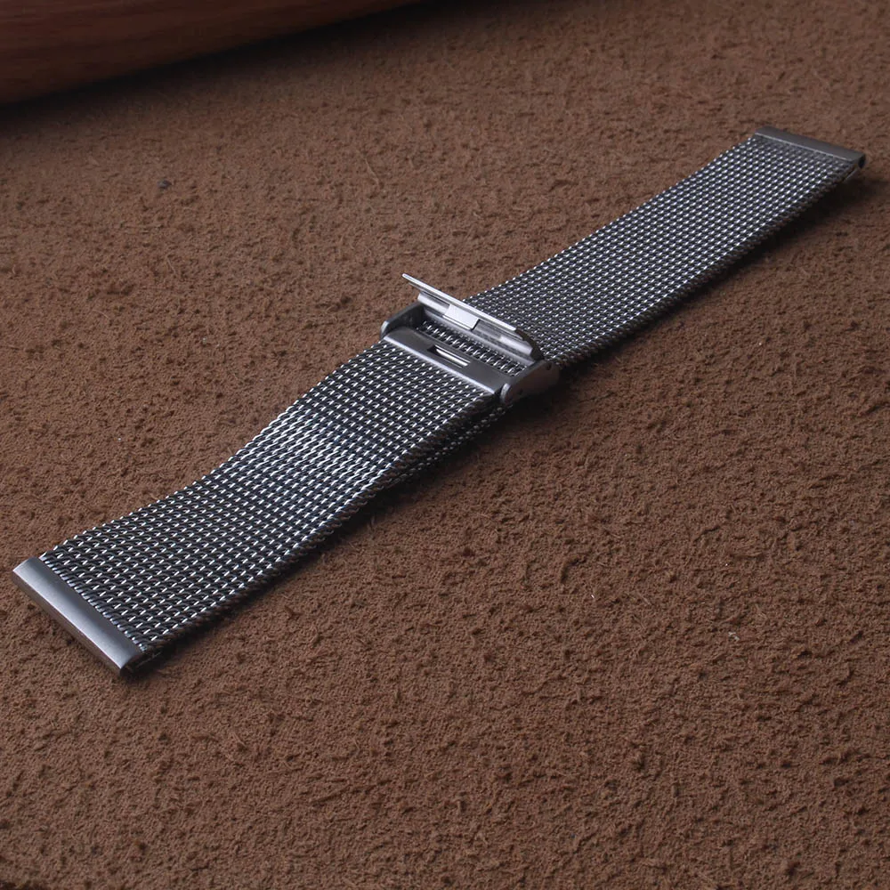 Новый ремешок для часов из нержавеющей стали, сетчатый ремешок для умных часов 18 мм, 20 мм, 21 мм, 22 мм, 24 мм, браслеты серебристого и черного цвета с пружинным стержнем