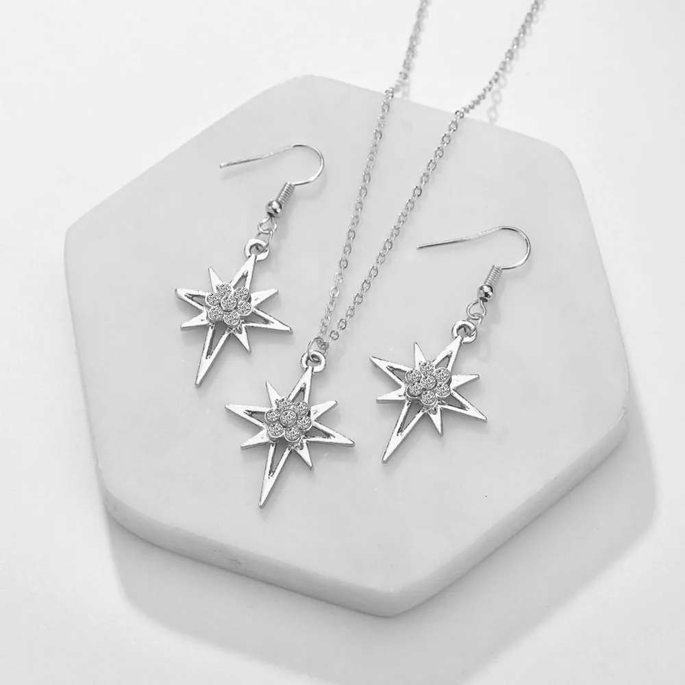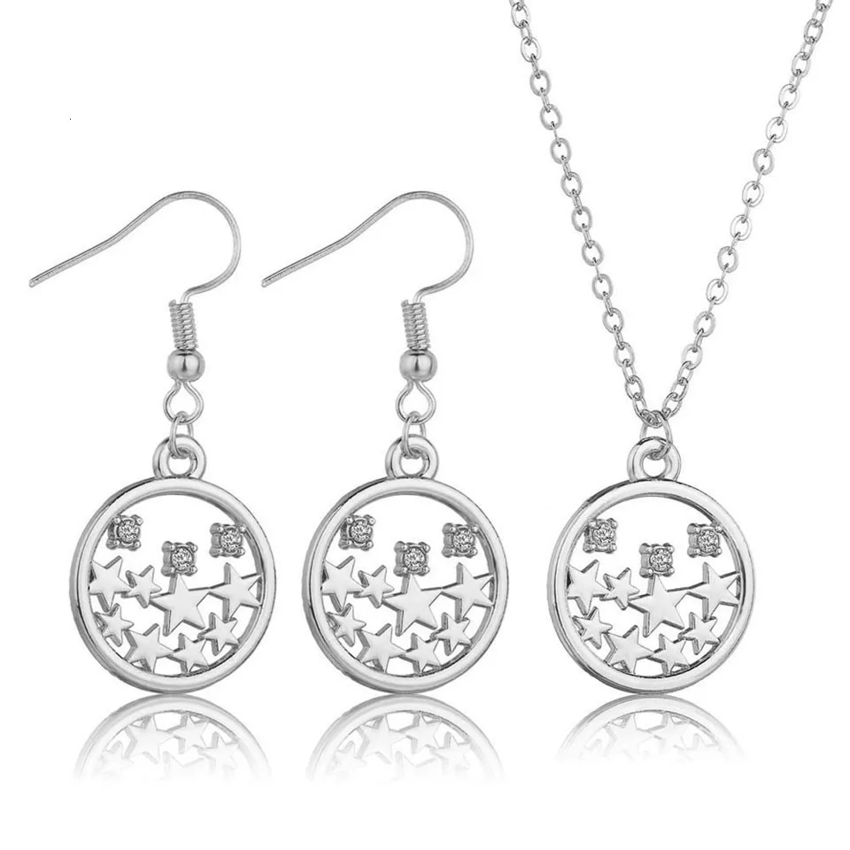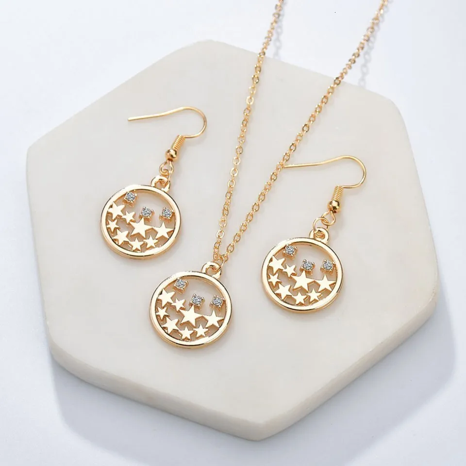 Новинка, женские модные серьги и ожерелье, ювелирный набор, круглые со звездами и стразы, Женские Ювелирные изделия, женские золотые свадебные ювелирные наборы