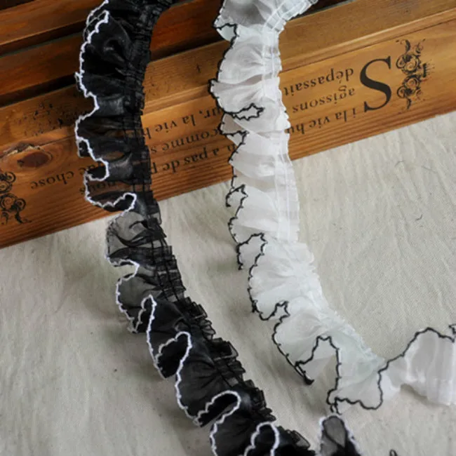 4 см в ширину, черно-белое Плиссированное шифоновое кружевное платье с оборками, 3D сложенная аппликация для одежды, гипюр, бахрома, Декор