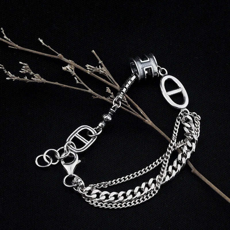 Браслет мужской из титановой нержавеющей стали модная цепь в стиле панк с синим