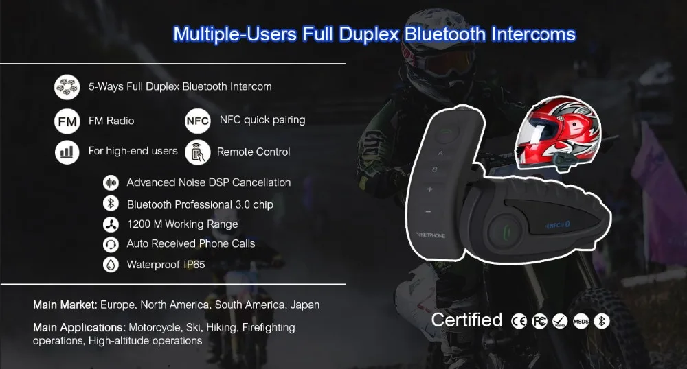 Bluetooth-гарнитура для мотоциклетного шлема, 1200 м