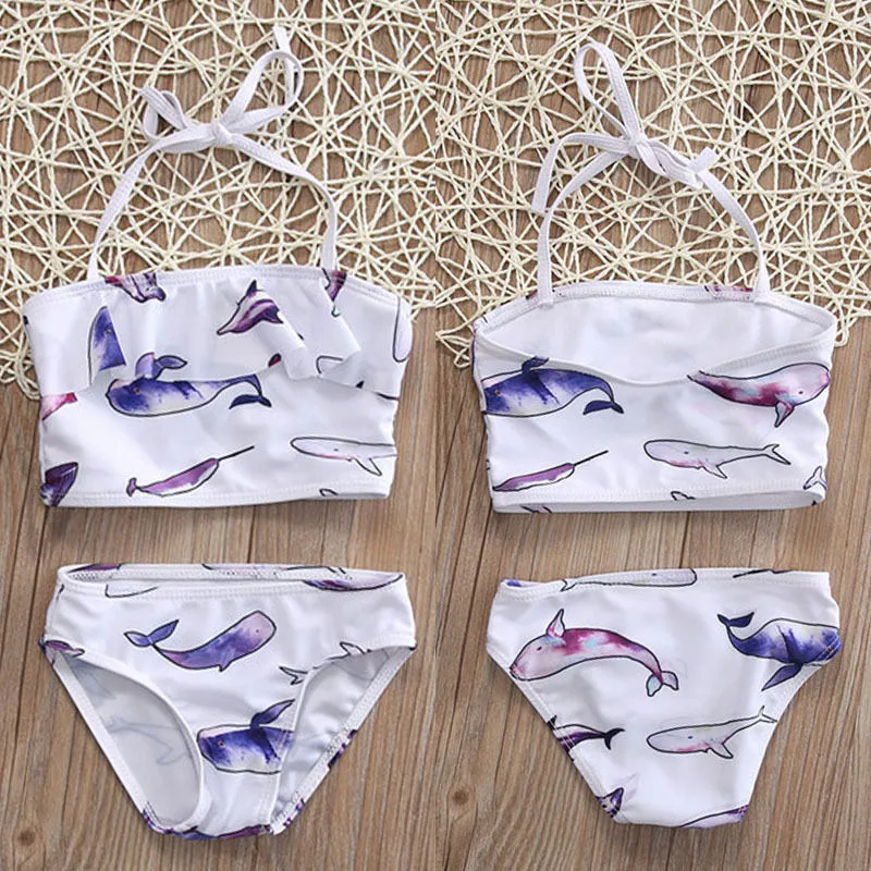 2018 новый детский комплект бикини для маленьких девочек, топ с принтом маленькой рыбки + плавки, купальник, купальный костюм, пляжная одежда, детская одежда Biquni | |||||||||||||||||||||||||