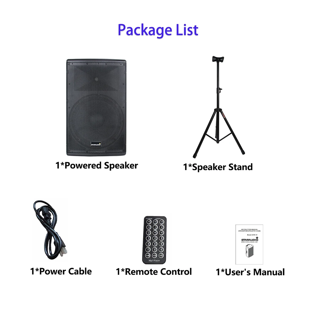 STARAUDIO 15 Inch Class D Powered Active PA DJ 4000Watt 4-Ohm Stage Audio Bluetooth Speaker + 1Pc Speaker Stand