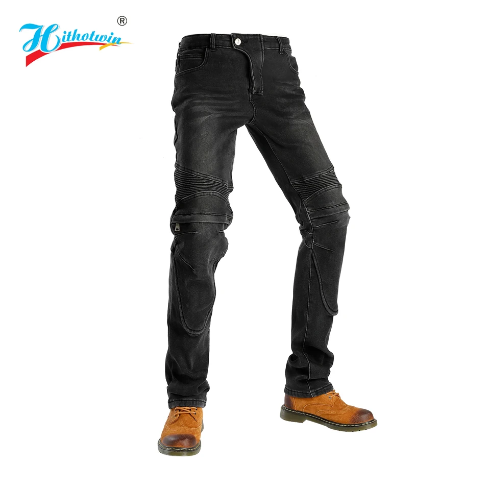 H-013 черные ветрозащитные зимние теплые мотоциклетные джинсы