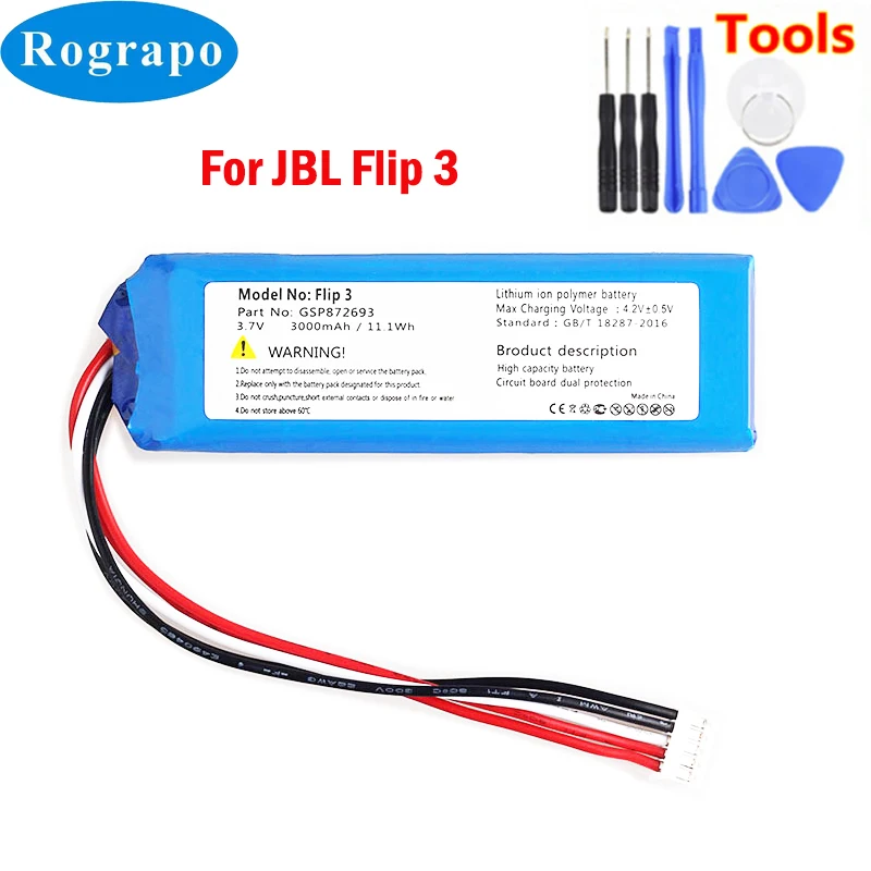 Новый 3,7 V 3000mAh GSP872693 P763098 03 Аккумулятор для JBL Flip 3 / JBL Flip 3 серый динамик запасной аккумулятор