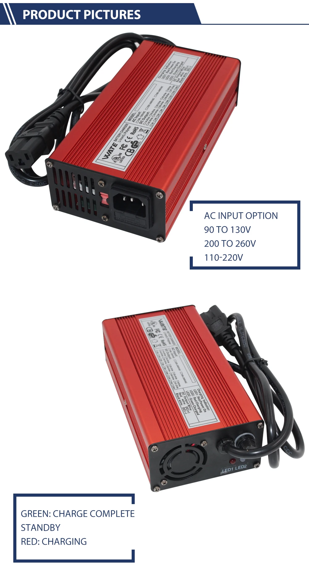 Охлаждение: Зарядные устройства используют систему воздушного охлаждения. При беспыльных и вентилируемых условиях температура полной нагрузки не должна превышать 40 ℃.