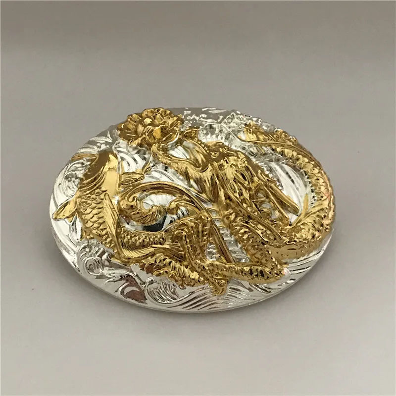 Retail 2021 New Style High Quality Oval 3D Gold Fish Dragon Solid Brass Belt Buckle For Men Women Fit 4cm Wide | Дом и сад