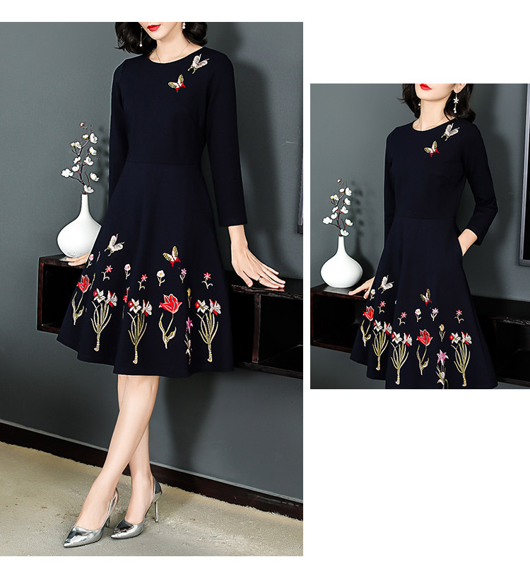 2019 черный вышивка Цветочный Бабочка темно-синий элегантное праздничное платье женское ТРАПЕЦИЕВИДНОЕ модное узкие в британском стиле винтаж женские весенние платья