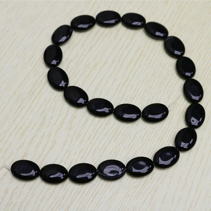 Wholesale Charms 22Pcs Oval Shape Black Onyx Stone Beads 13X18mm Created DIY Accessory Parts For Jewelry Making