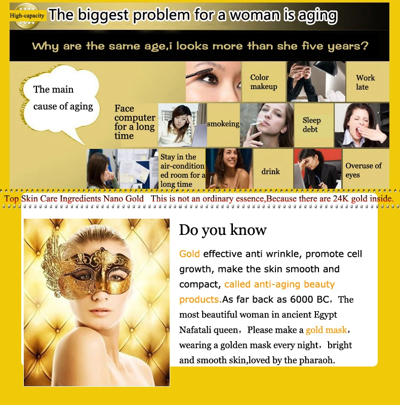 Ingredients: 24K active gold,ginseng extract,collagen,jojoba oil,ect