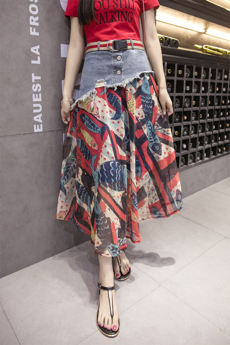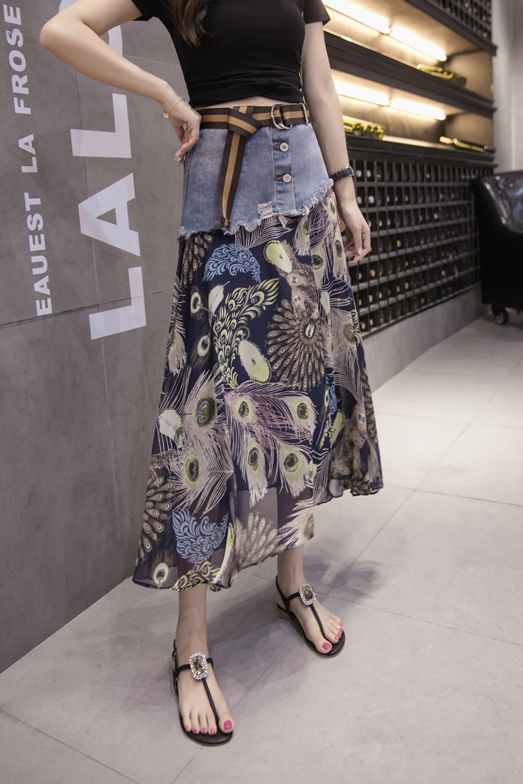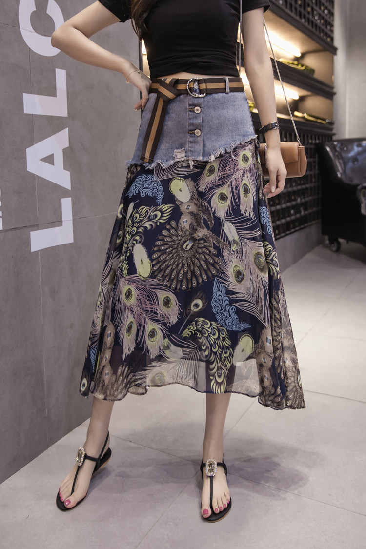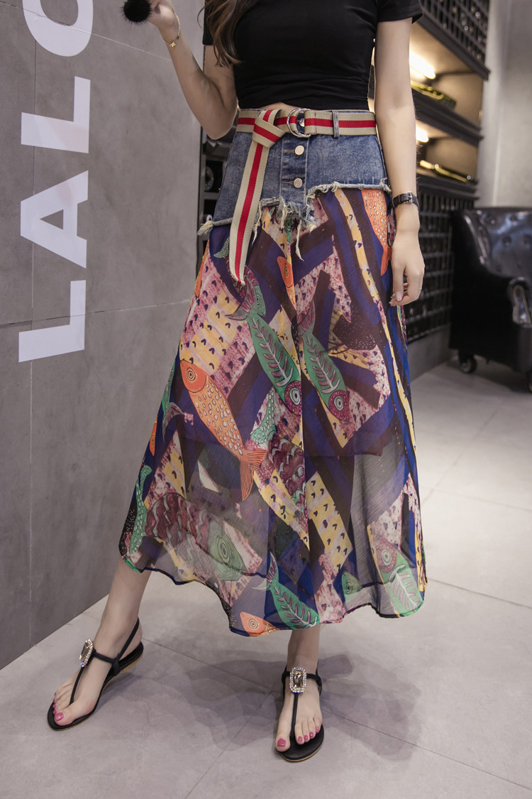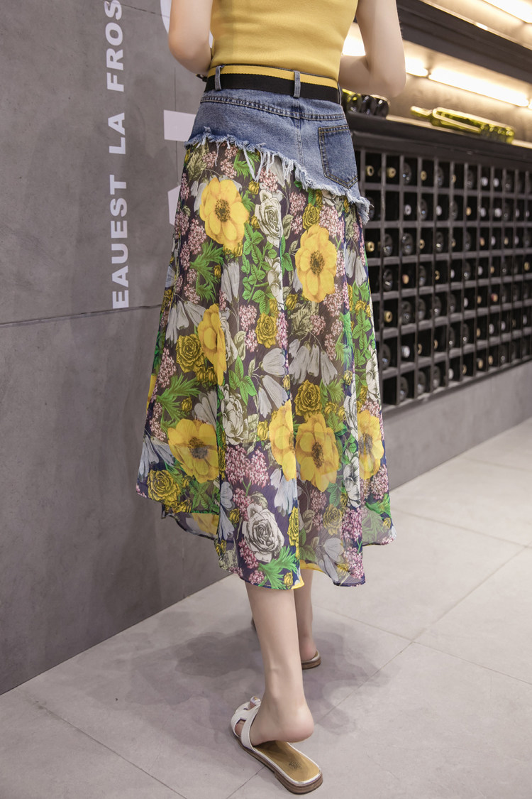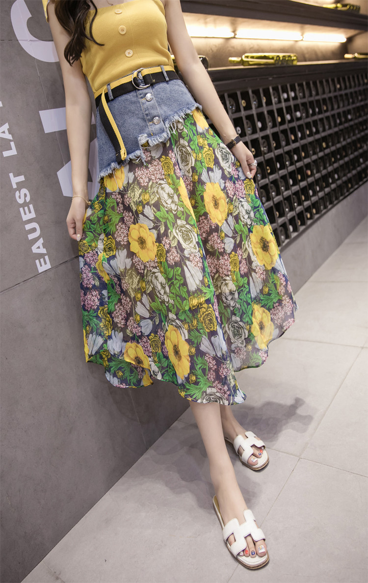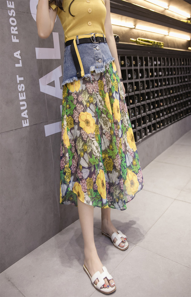 Юбка женская шифоновая с завышенной талией и цветочным принтом|Юбки| |
