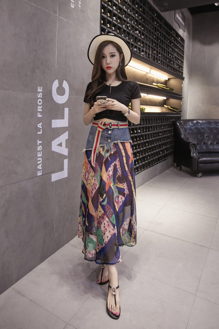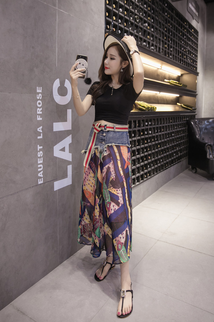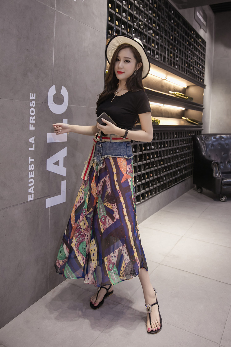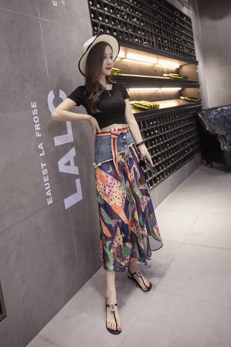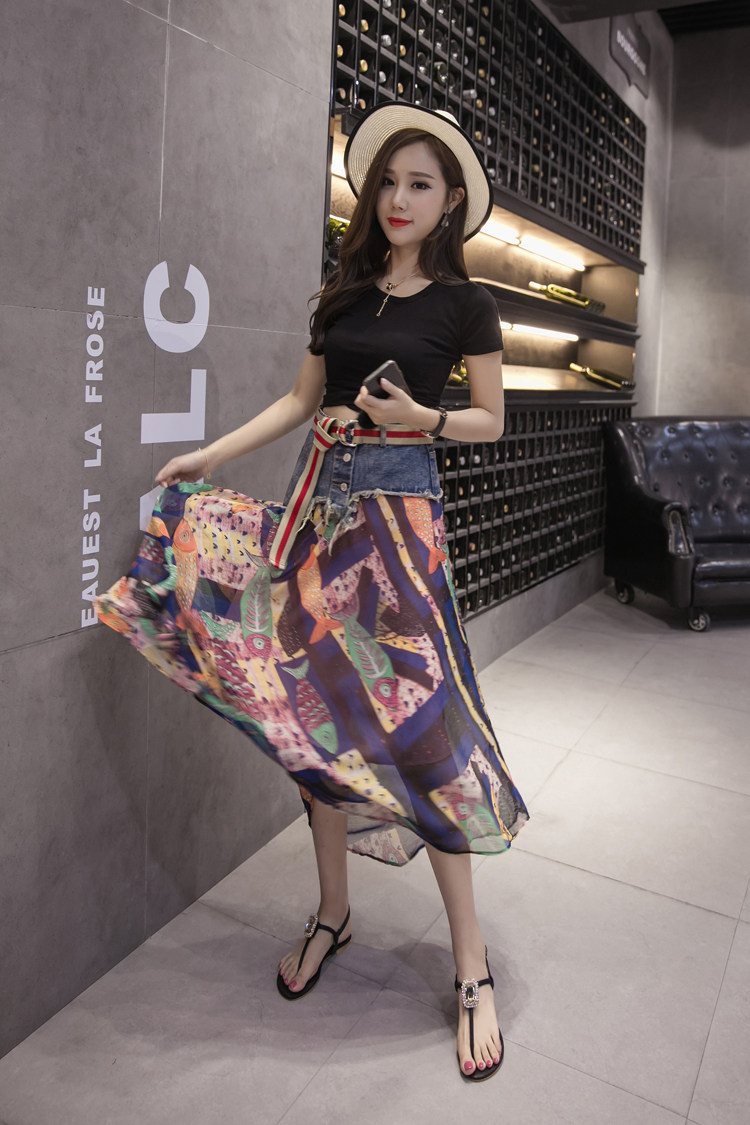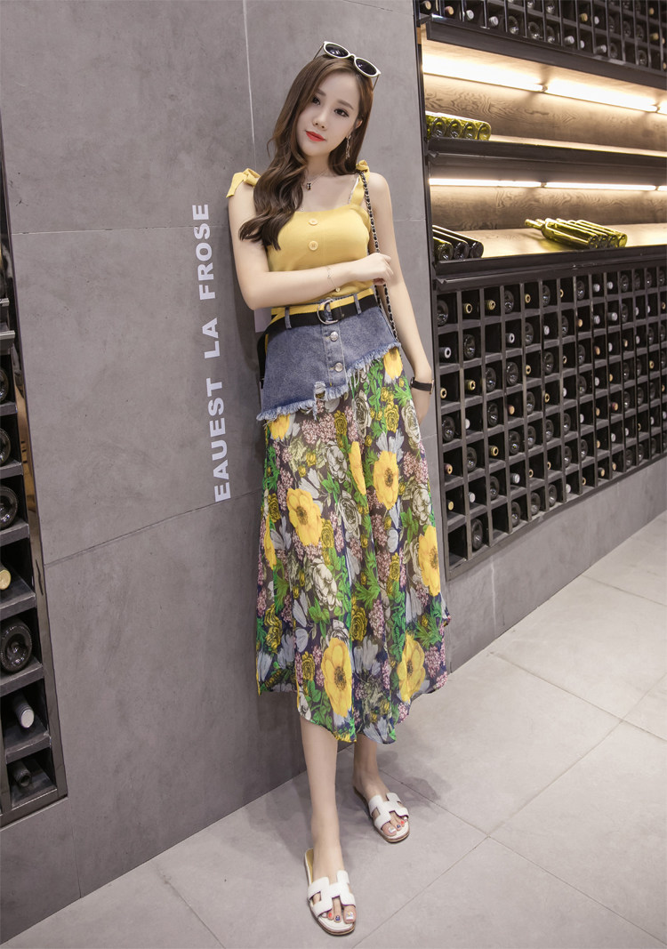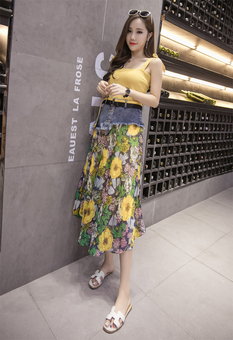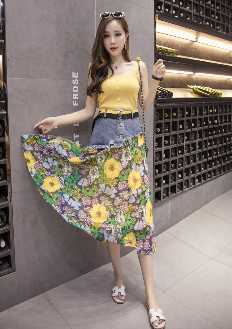 Юбка женская шифоновая с завышенной талией и цветочным принтом|Юбки| |