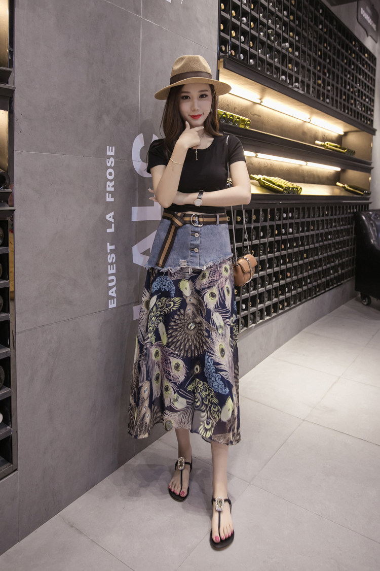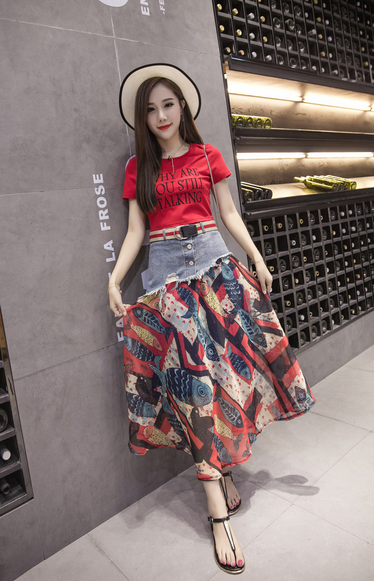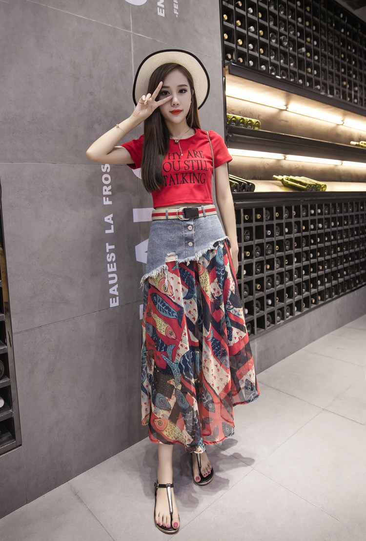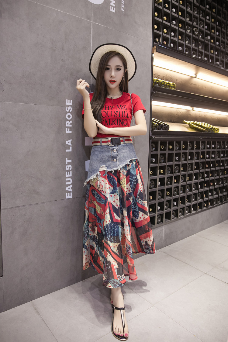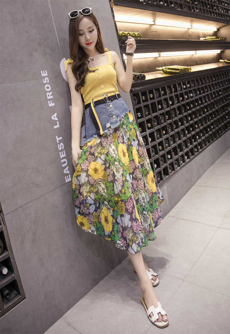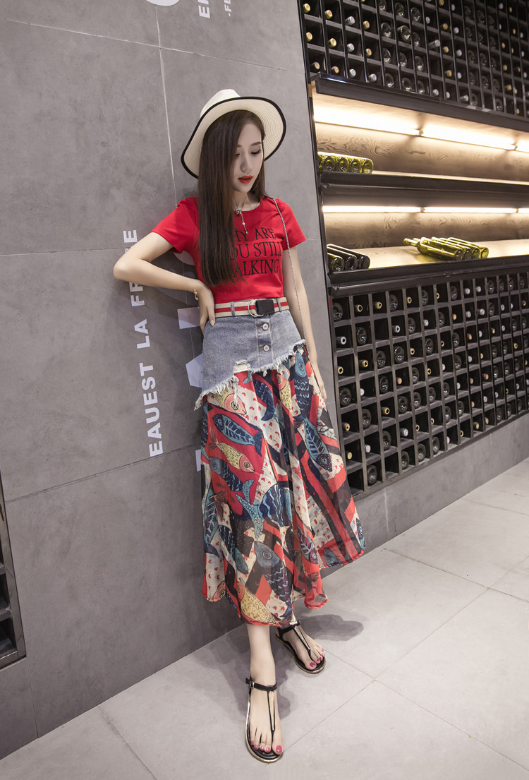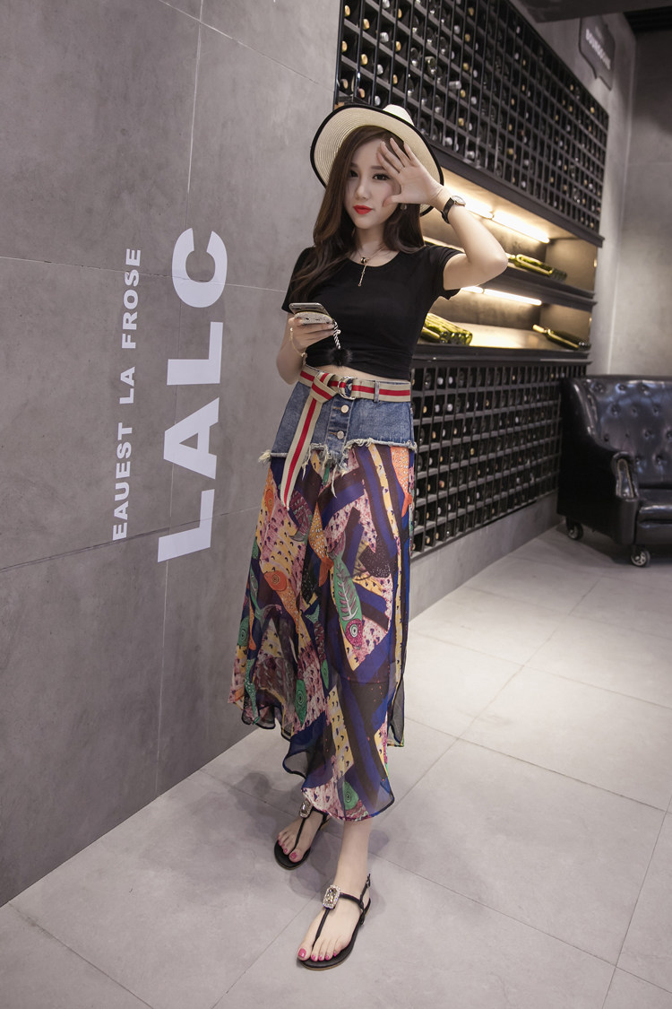 Юбка женская шифоновая с завышенной талией и цветочным принтом|Юбки| |