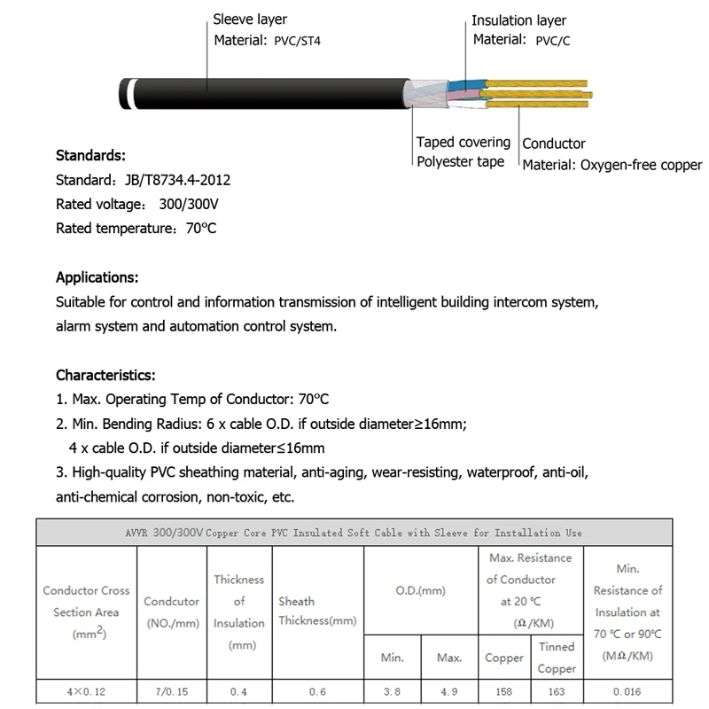1. AVVR 0.12mm2 U0/U 300/300V медный провод кабель;