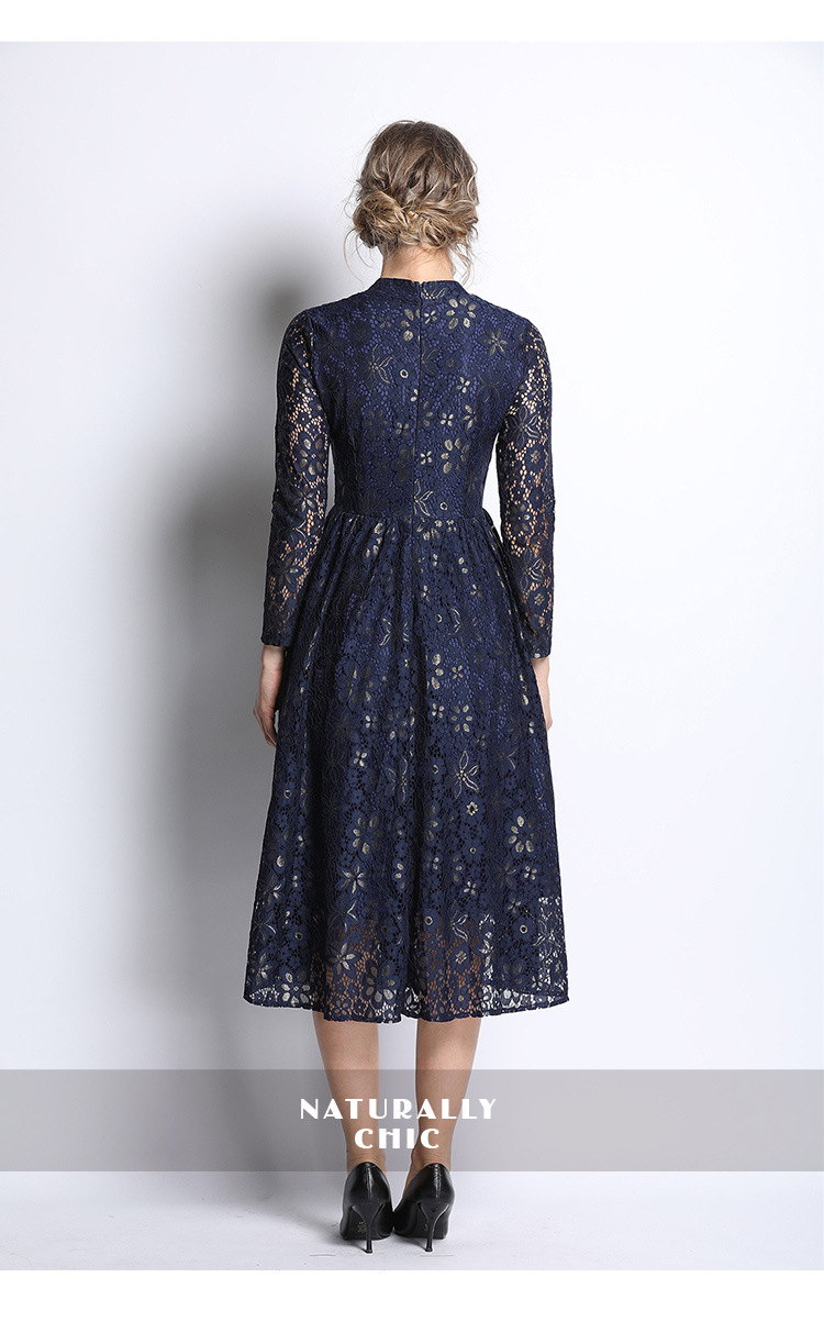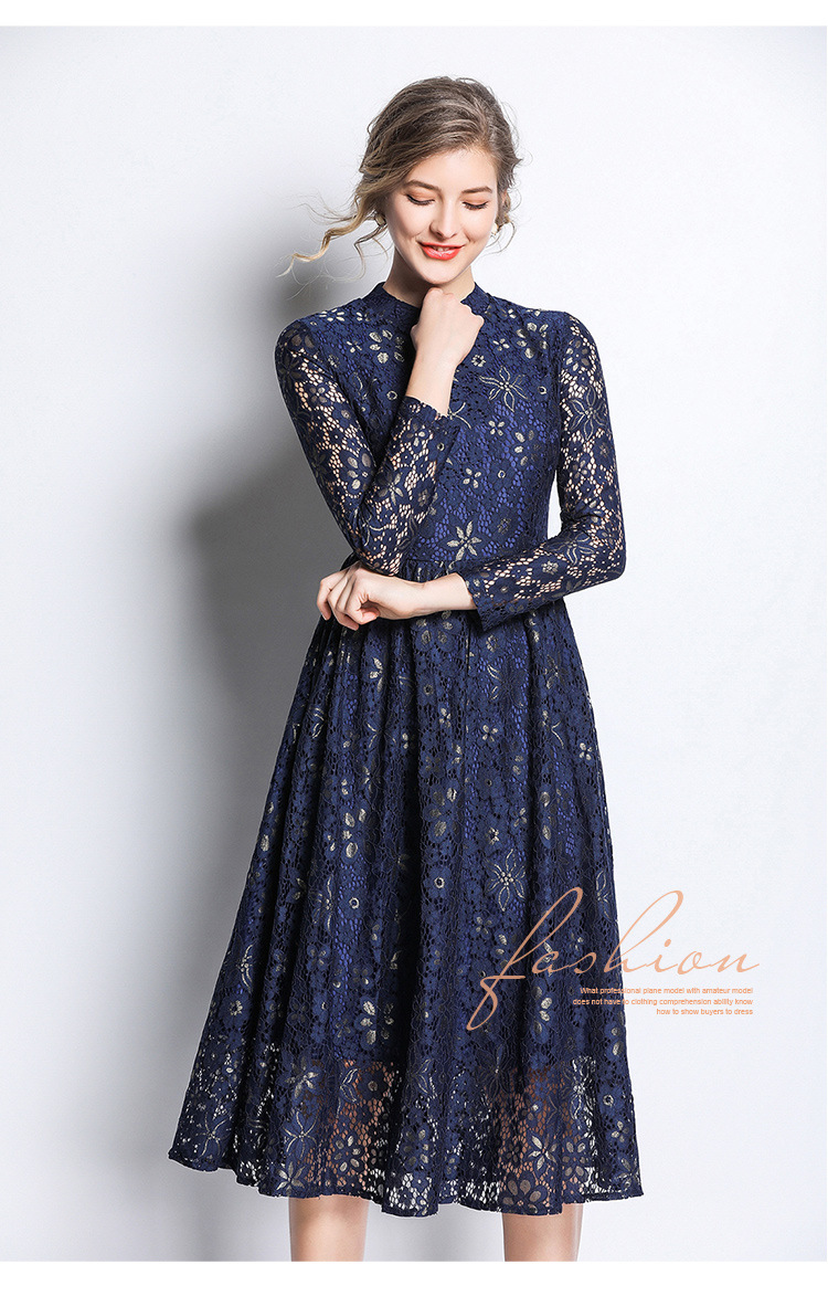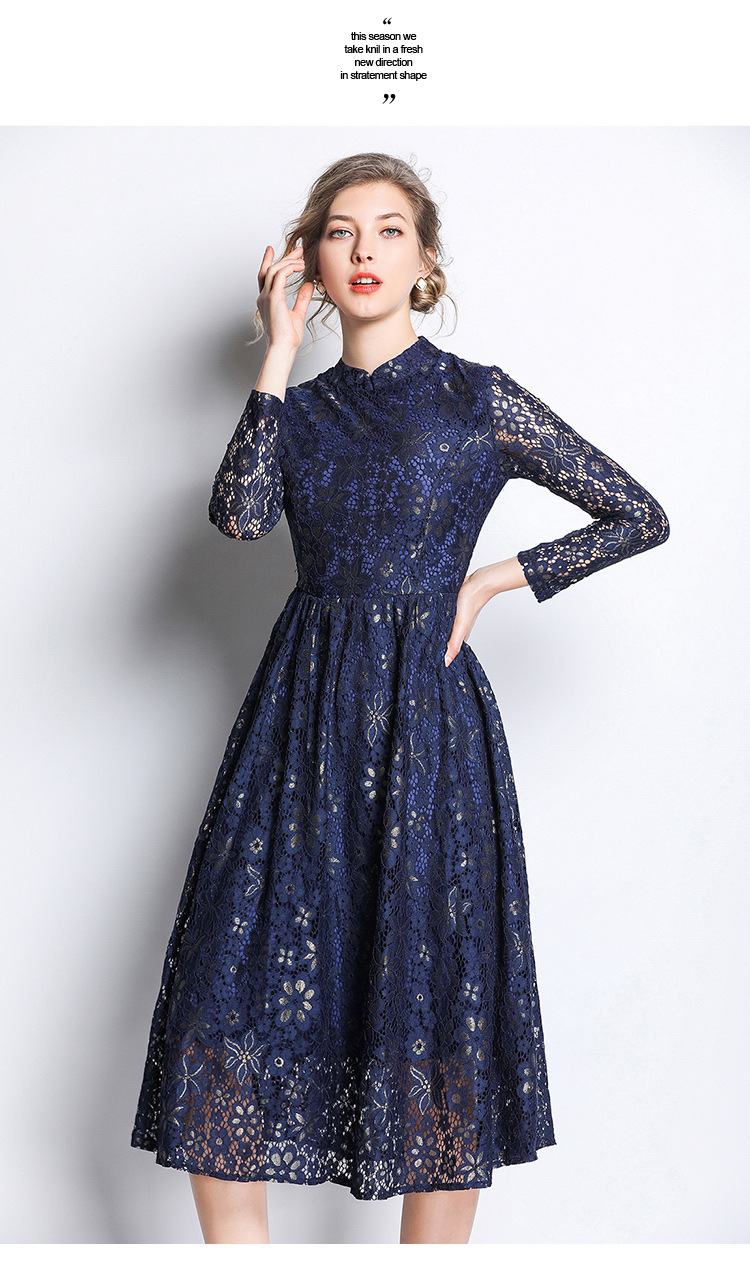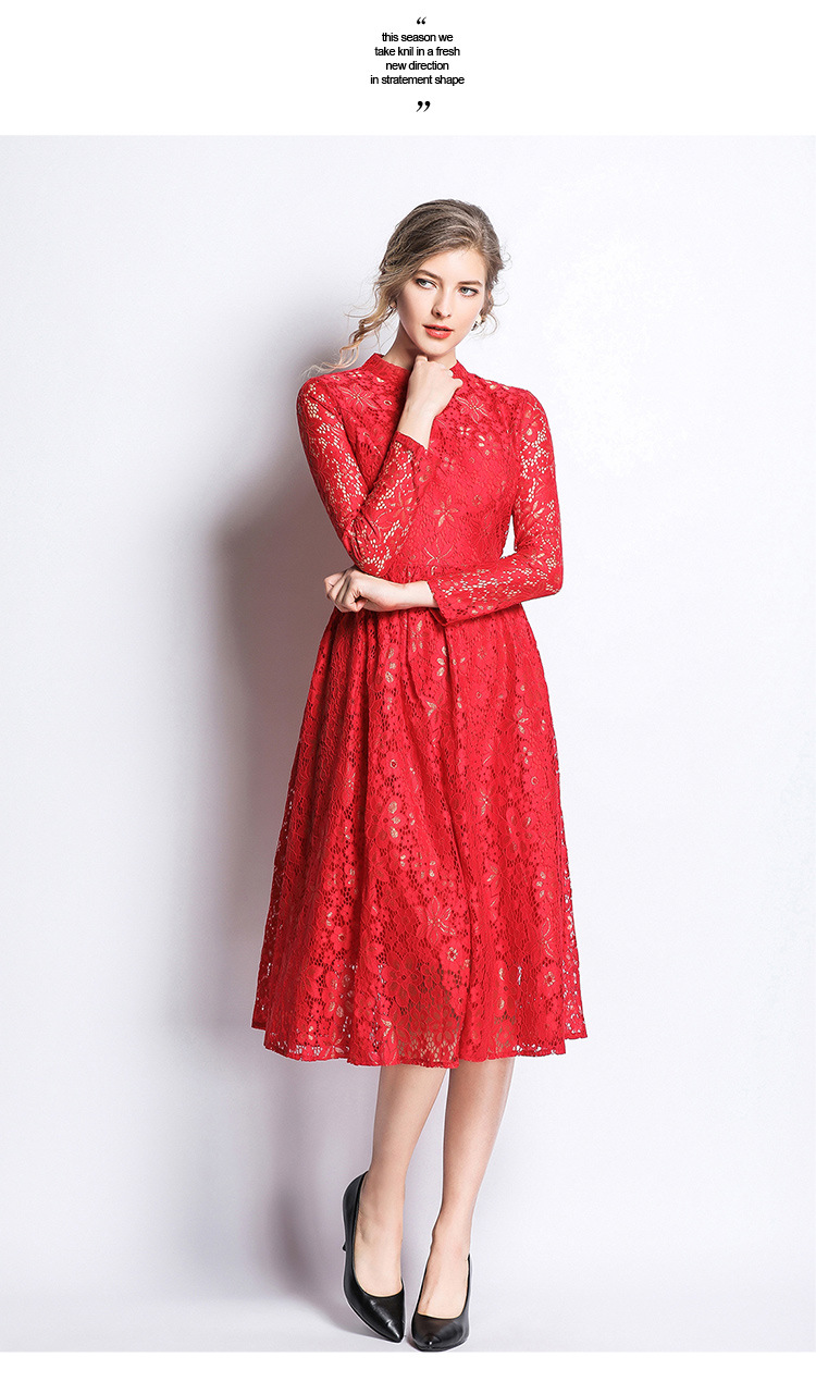 Элегантное открытое офисное повседневное винтавечерние платье 2019 Новое Женское кружевное платье с длинным рукавом тонкое модное красное синее платье высокого качества