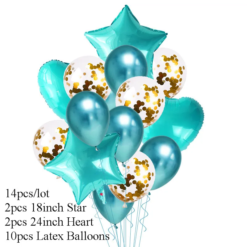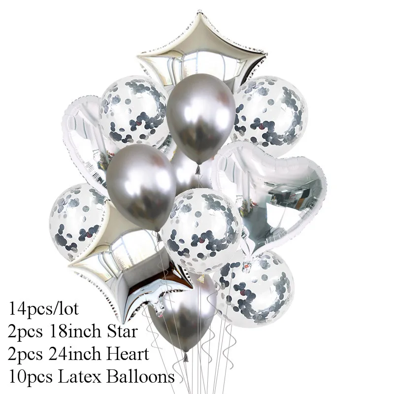 Размер латексных шаров: 12 дюймов Размер воздушных шаров: 18 дюймов Размер шаров в форме сердца: 24 дюйма Посылка: 14 шт.
