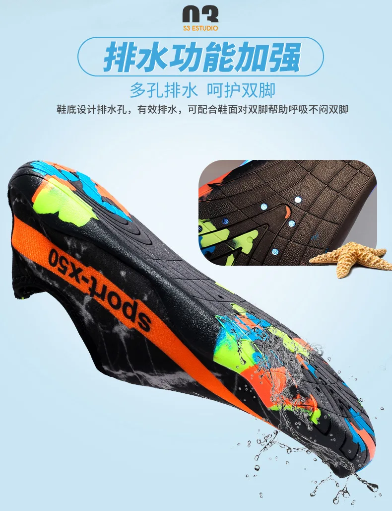 Летние акватуфли для плавания мужчин и женщин Нескользящие кроссовки пляжа