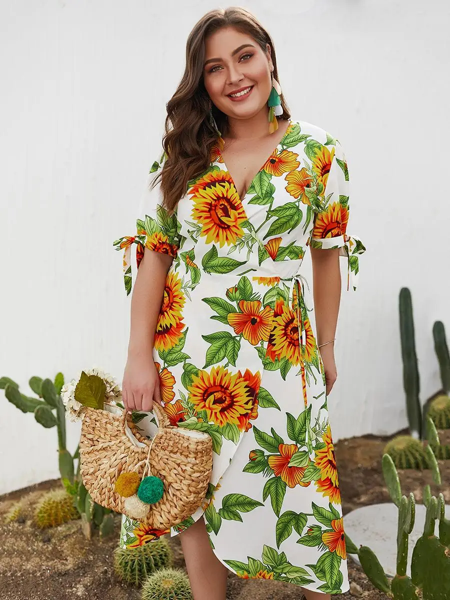 * Описание товара:Новые женские'S повседневное Цветочное платье с коротким рукавом и v-образным вырезом большого размера