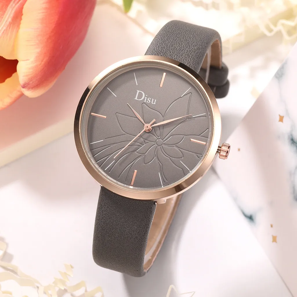 Роскошные модные женские кожаные ремни, часы с цветком, аналоговые кварцевые часы