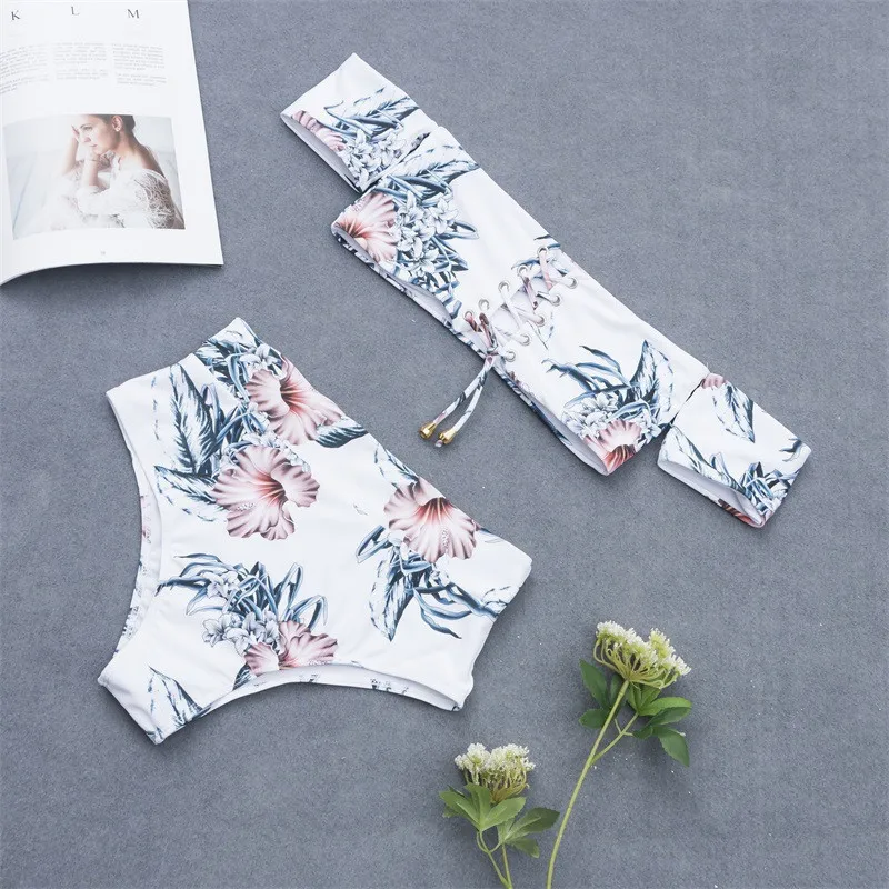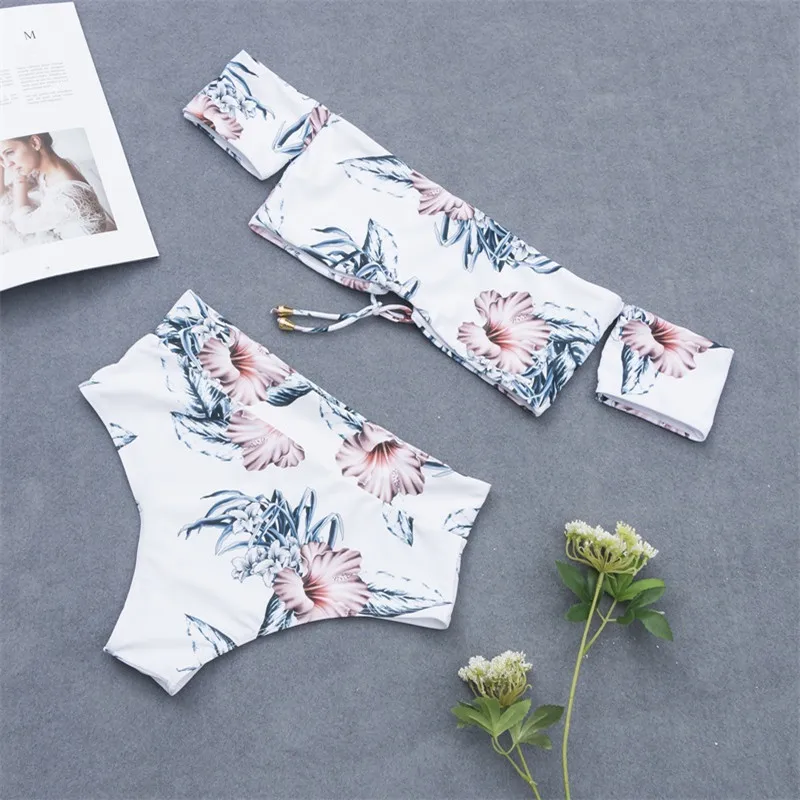Новый цветочный принт женский сексуальный раздельный купальный костюм бикини с коротким рукавом комплект бикини свежий XL сексуальный купальник Женская пляжная одежда