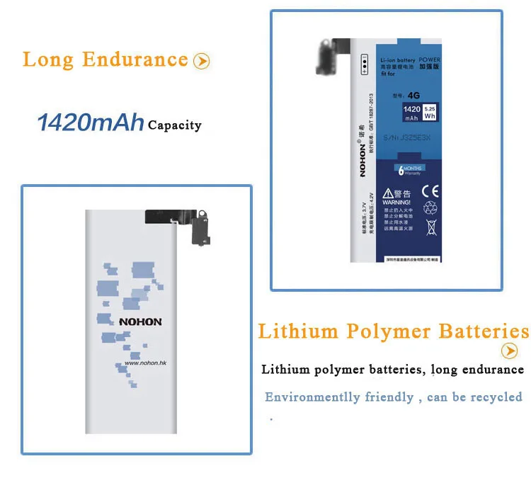 Nohon батарея для iPhone 4 4G Apple iPhone4 i4 Высокая реальная емкость литий-полимерная батарея 1420mAh + инструменты для батарей Apple iPhone 4 |
