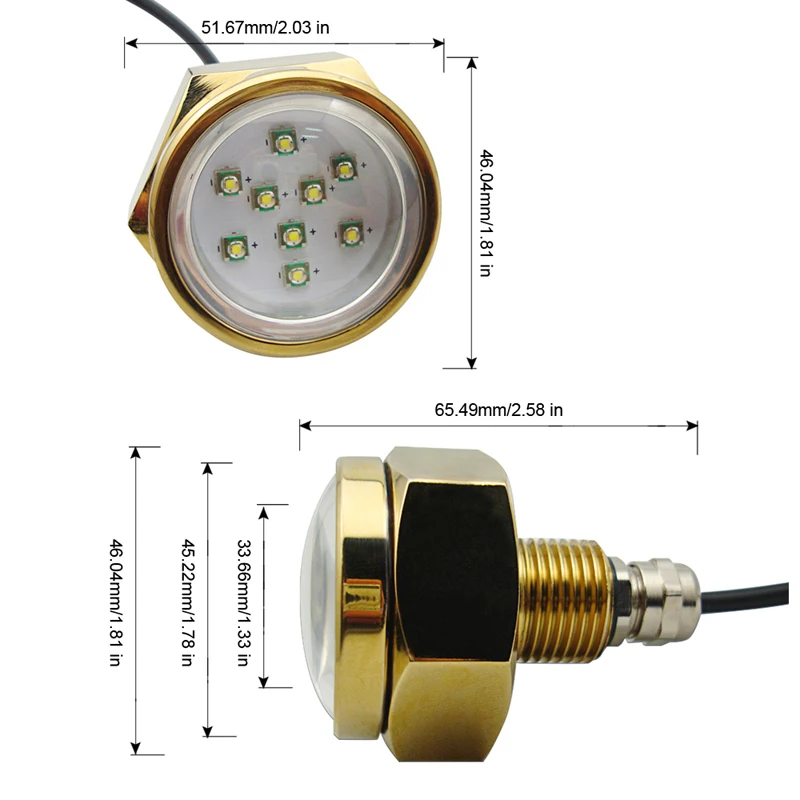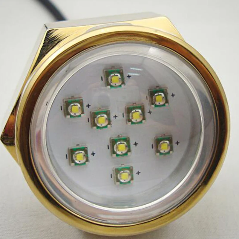 Особенности:Светодиодный светильник высокой мощности, новейший, эффективный, теплопроводный.Сделано изТитановый сплав, Красивый внешний вид и устойчивость к коррозии.Высокая светоотдача с длительным сроком службы.IP68 водонепроницаемый, 100% водонепроницаемый, пыленепроницаемый, противоударный.Характеристики:Материал: титановый сплавНапряжение: 11-28 вМощность: 27 ВтВодонепроницаемость: IP68Угол обзора: 180 градусовЦвет светильник: белый/синий/зеленыйПрименение: для контурного освещения яхты, подводного освещения, освещения бассейна, внутреннего освещения лодки и так далее.Посылка1 х сливная пробка