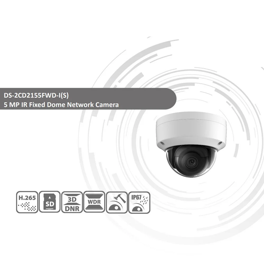 Hikvision DS-2CD2155FWD-I POE камера видеонаблюдения 5MP IR Сетевая купольная камера 30 м IR IP67 IK10 H.265 + слот для sd-карты10 шт./лот