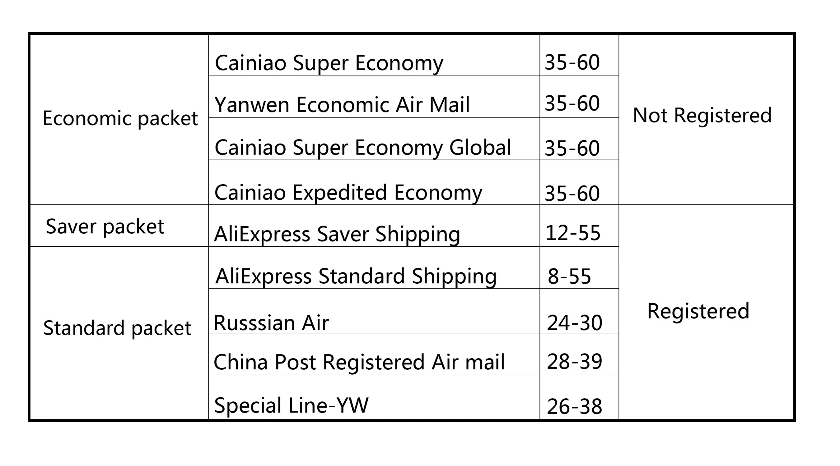 2. Как uausl , (Почта Китая обычный маленький пакет плюс, Почта Китая зарегистрированная Авиапочта и AliExpress Стандартная доставка) срок доставки составляет 16-35 рабочих дней. В случае особых обстоятельств (праздничные дни, корректировка политики, таможня, удаленная зона и так далее), это будет отложено.