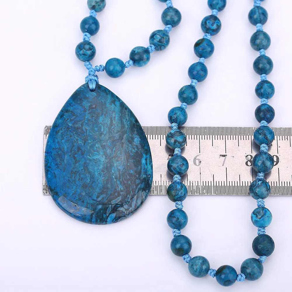 Натуральный, голубой, бирюзовый женский кулон с капельками воды, длинное ожерелье с круглым кулоном из бусин, женский кулон с раучтопазом, ювелирные изделия для одежды