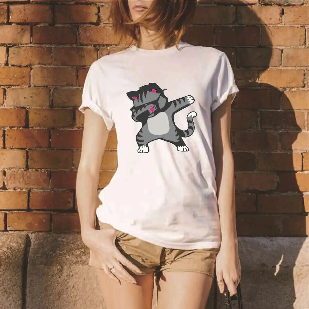 2019 newFashion printed unicorn funny dabbing cat pattern t-shirt Europe and America simple casual versatile clothing