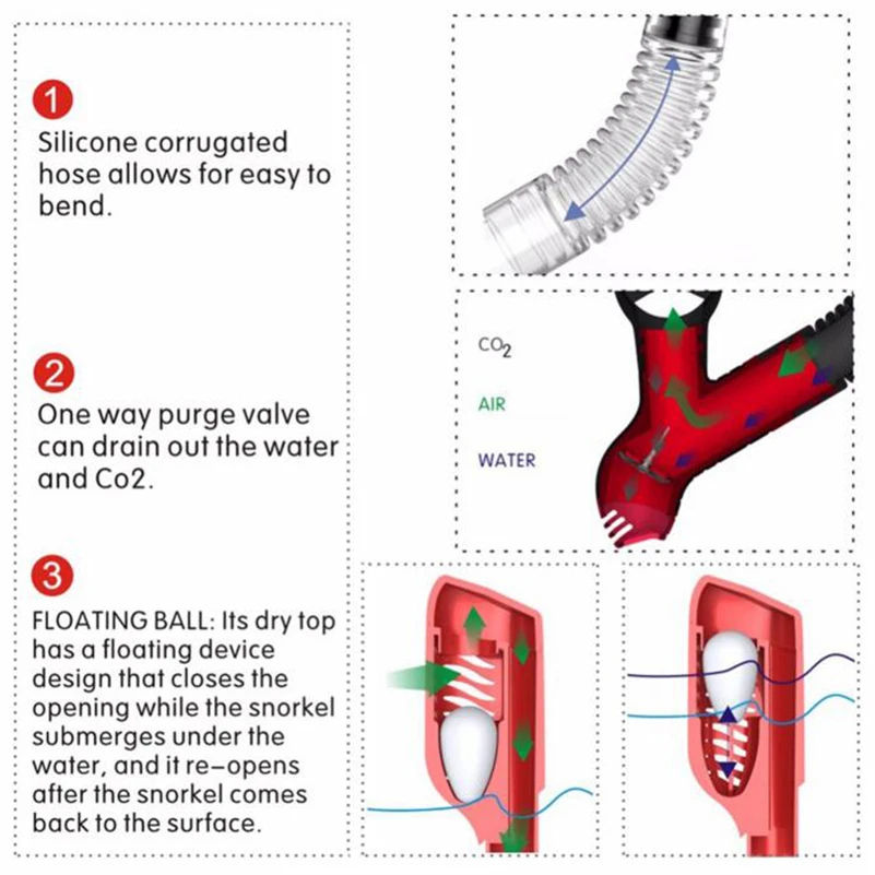 Плавающий шар: его сухая верхняя часть имеет плавающее устройство, которое закрывает отверстие, в то время как трубка погружается под воду, и он снова открывается после того, как трубные кулачки возвращаются к поверхности