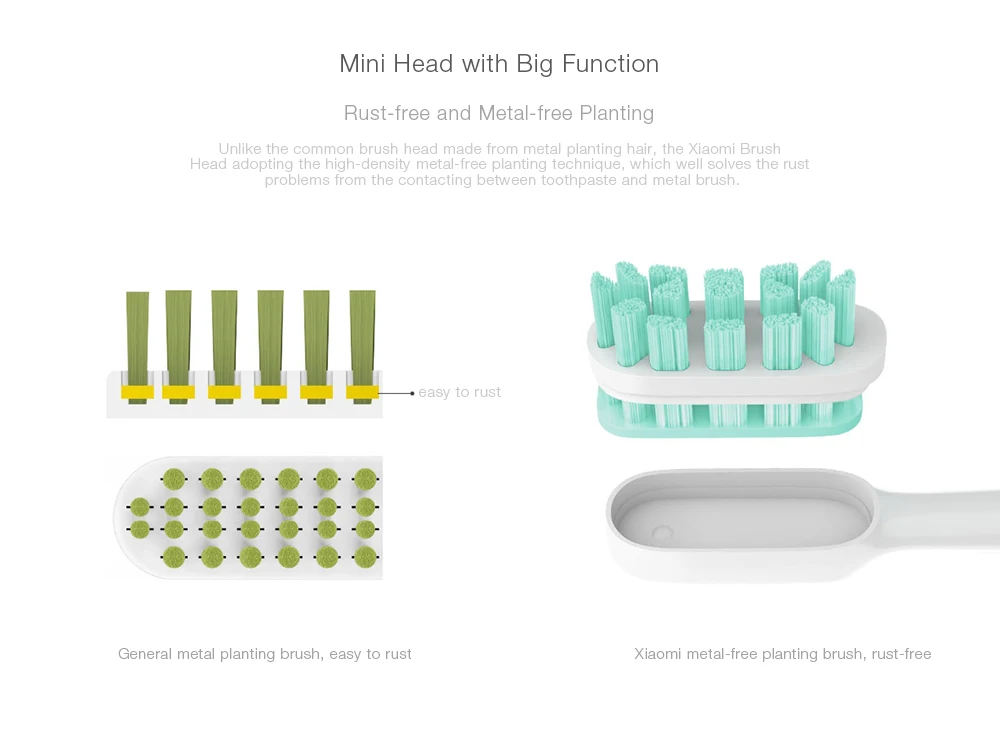 Mini Type: The brush is finer, brushing more cleaner, and is suitable for people with heavy tooth stains