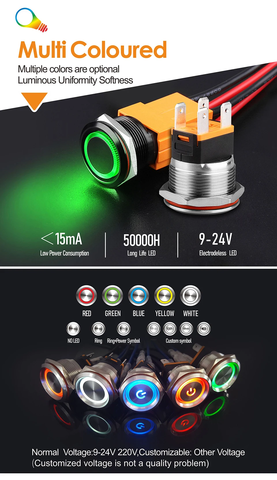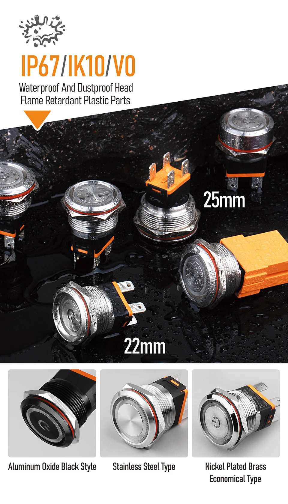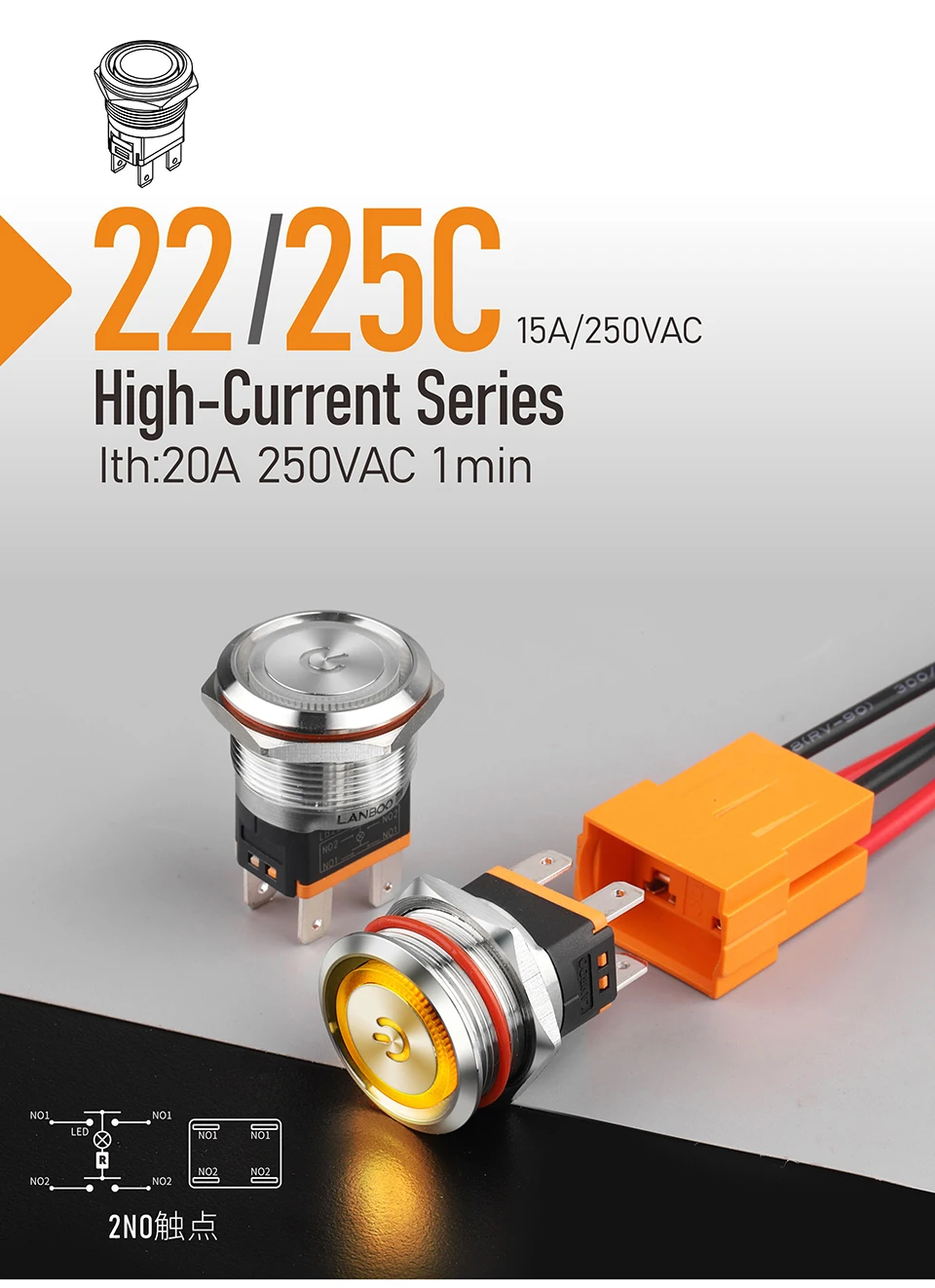 LANBOO 22 мм 15A высокотоковый металлический кнопочный переключатель