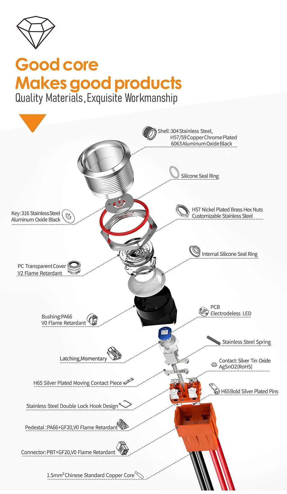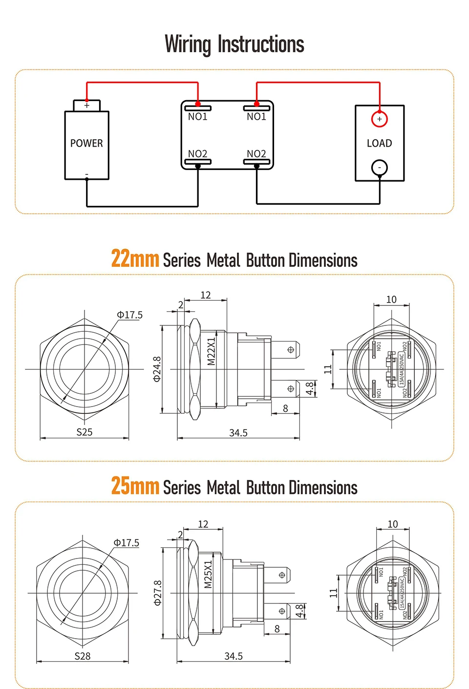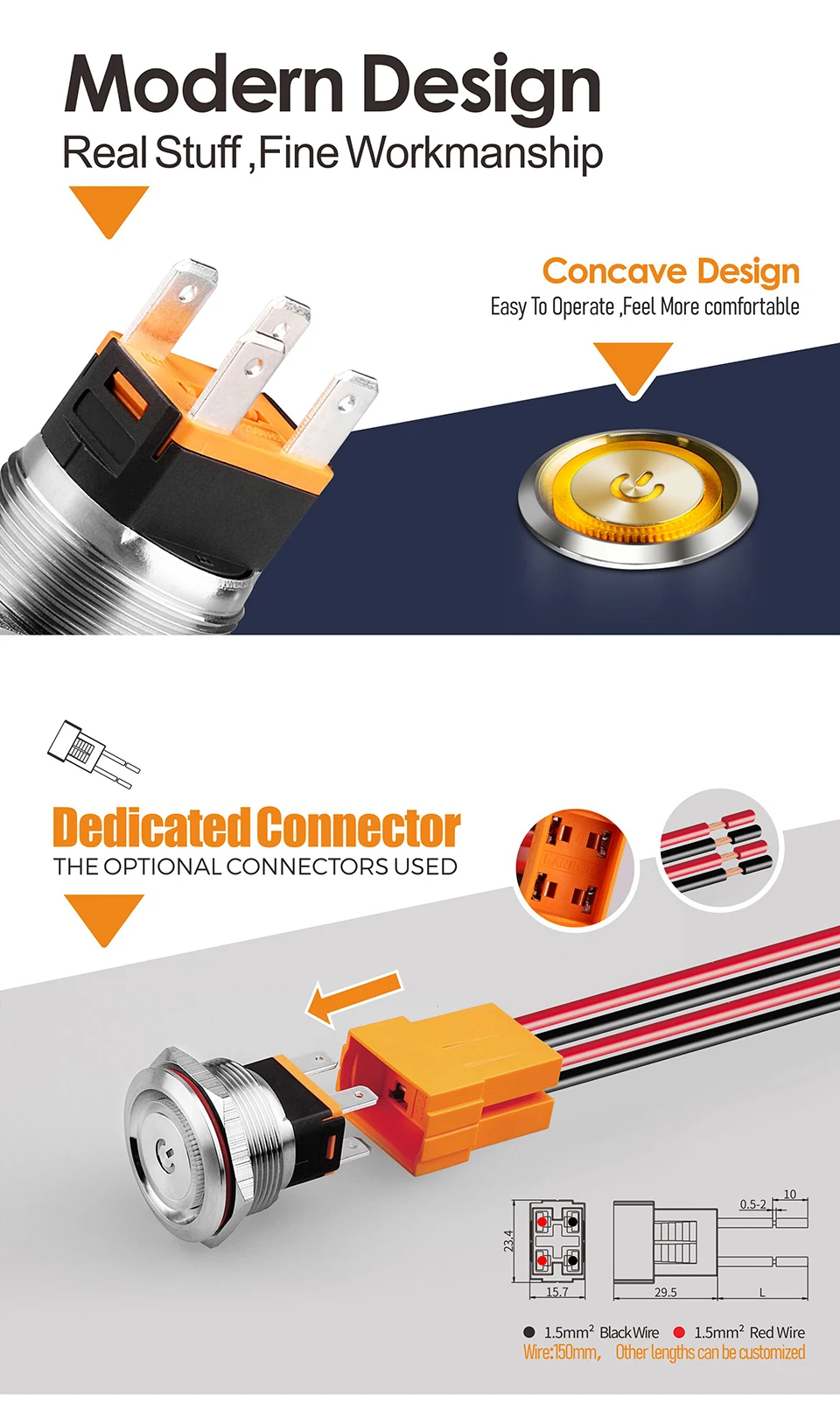 LANBOO 22 мм 15A высокотоковый металлический кнопочный переключатель