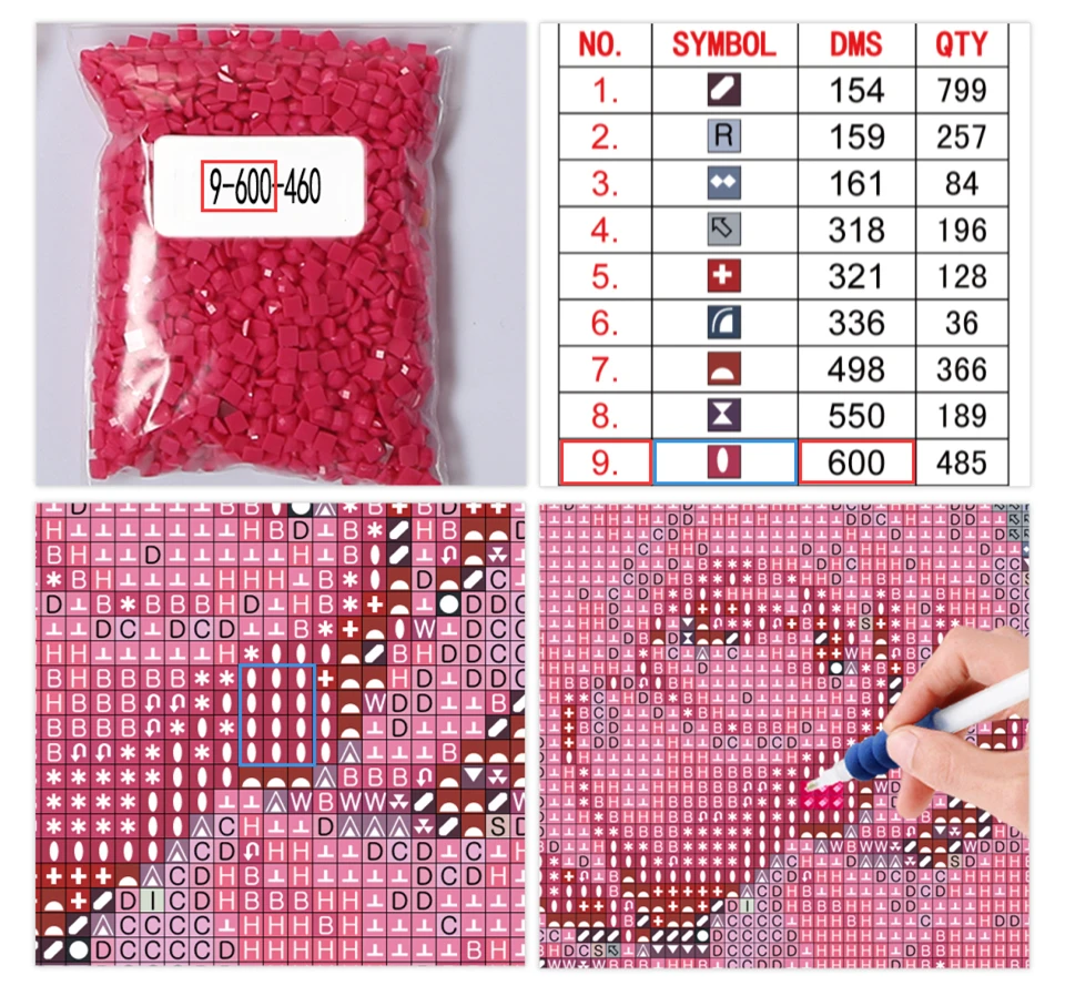 В соответствии с кодом цвета (№ и DMC), найдите символы на картинке, пожалуйста, не беспокойтесь о количестве.