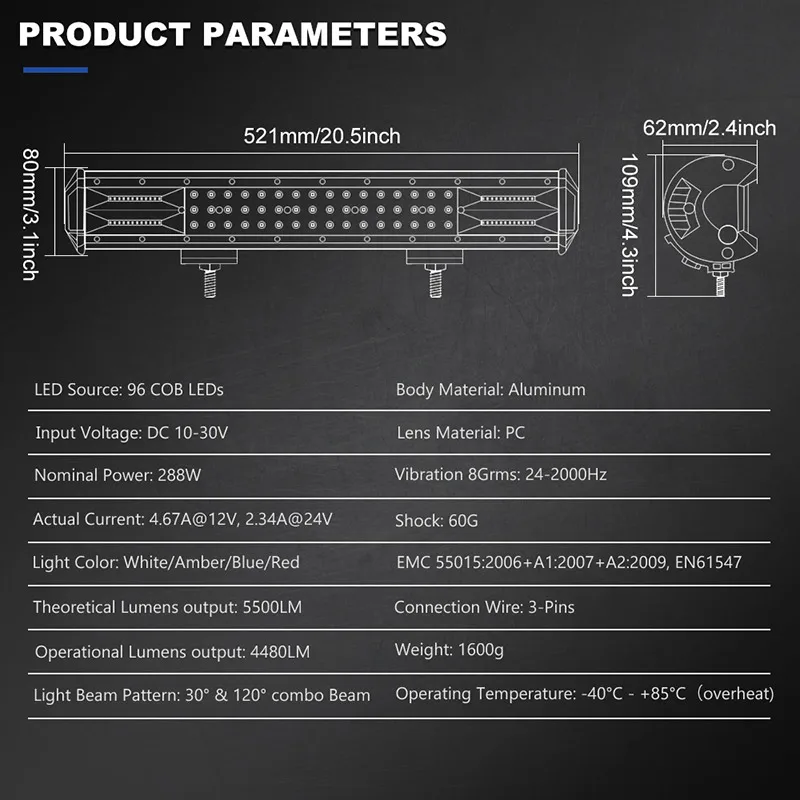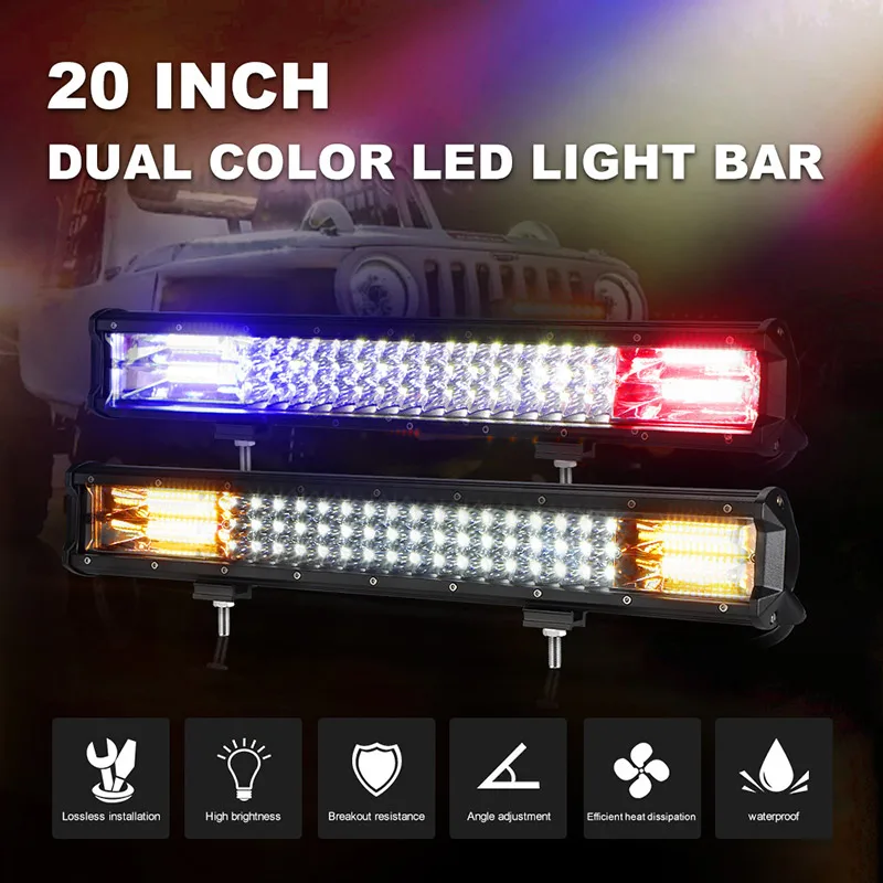 20 дюймовый светодиодный светильник для внедорожника, двухцветный белый, янтарный, синий, красный, точечный прожектор, 12 В, 24 В, светодиодный противотуманный фонарь для грузовика ATV SUV 4X4