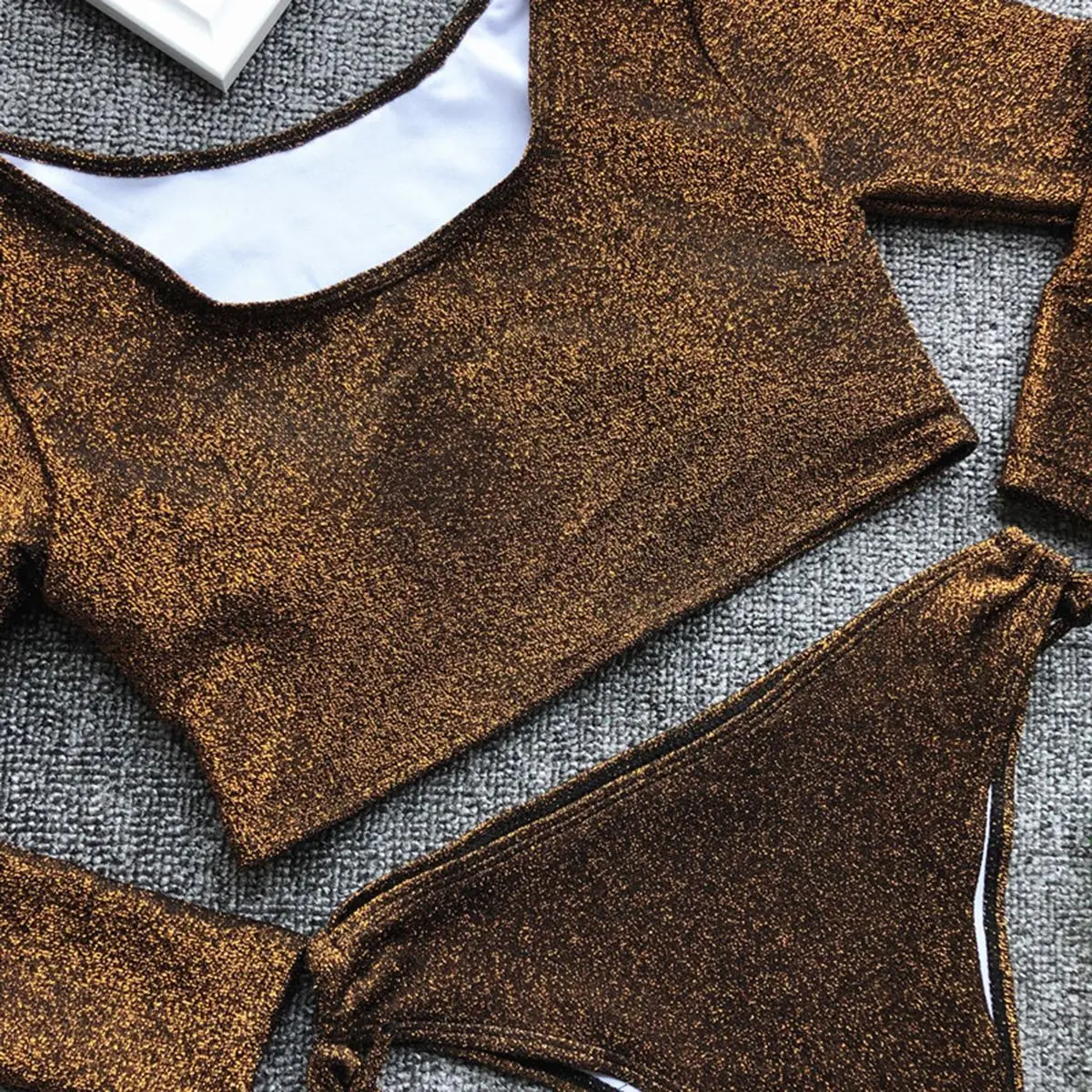 2 шт./компл. Блестящий с длинным рукавом, солнце блок бикини набор женский сексуальный купальный костюм с высоким вырезом КупальникиBra & Brief Sets