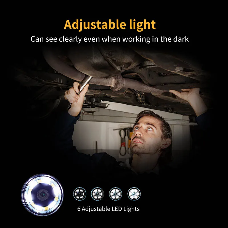3.[ 6 светодиодный индикатор]:Сравните с другой змеиной камерой, которая не может регулировать яркость светильник, наша камера для осмотра эндоскопа имеет 6 светильник s,3 регулируемых яркости для вас на выбор, предоставляя вам четкую картинку даже в темноте, так и с низким уровнем светильник состоянии.