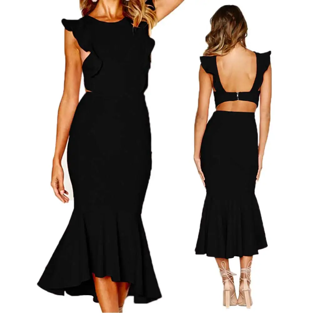 2. Дизайн без рукавов с оборками и сексуальный дизайн с открытой спиной подчеркивает фигуру;