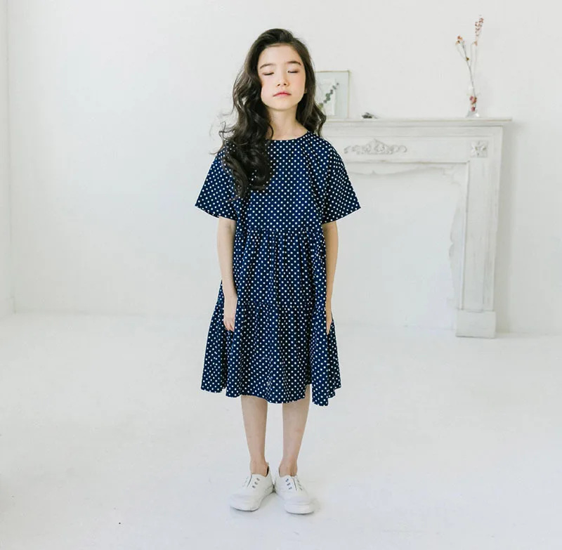 Платья До Колена для маленьких девочек детское повседневное летнее платье в горошек для девочек-подростков хлопковая одежда трапециевидной формы синего цвета для мамы и дочки 4, 16, 17, 18 летОт 5 до 15 лет торжественные платья для маленьких и больших девочек; милые платья для девочек