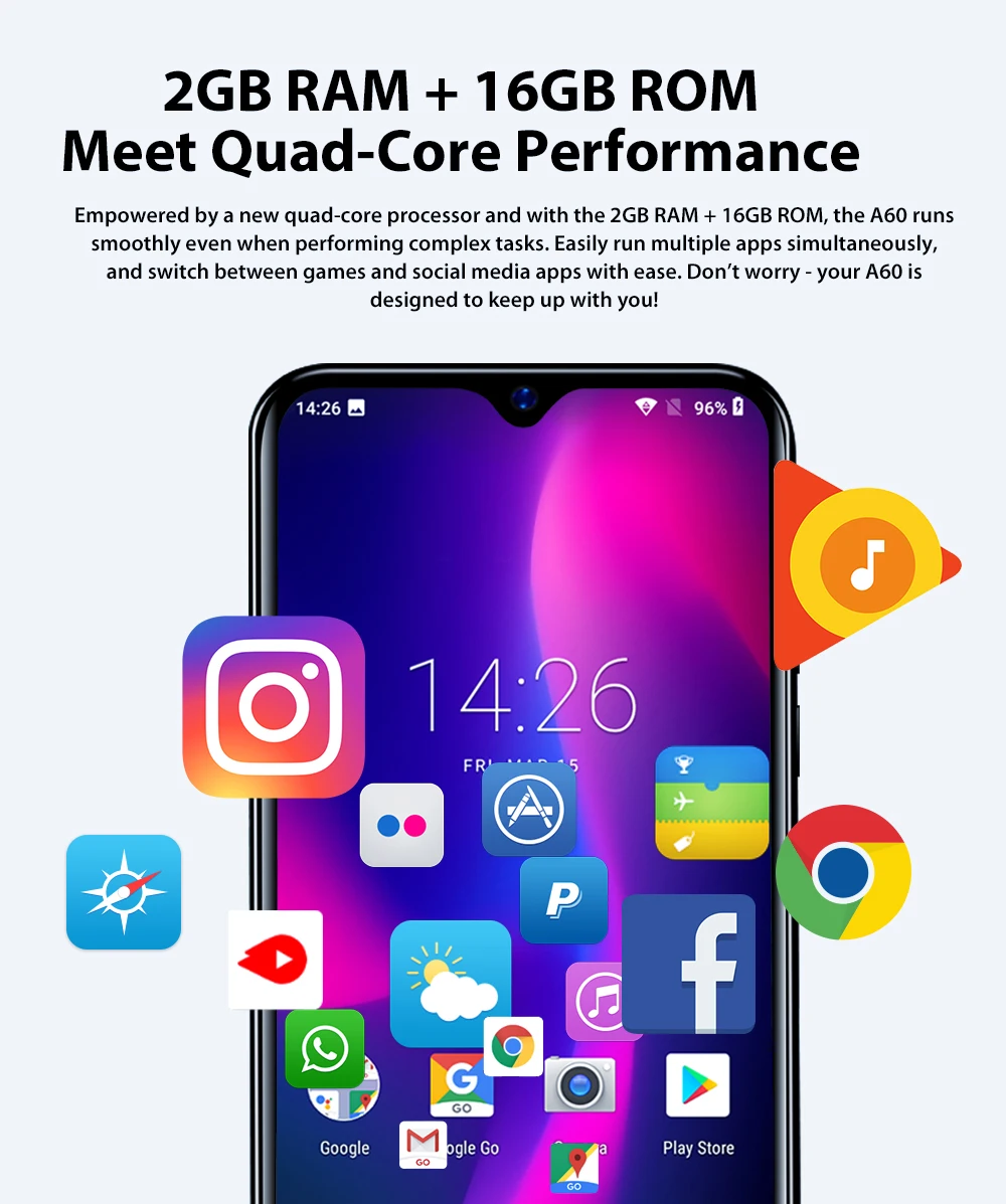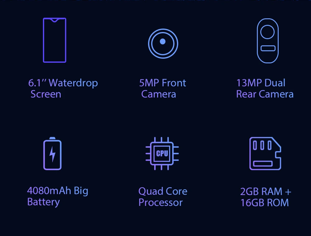 Размер экрана: 6,1 дюймов 1280*600 пикселей, 19,2: 9 | Посылка: 1 х USB кабель Зарядное устройство (5 В/1 а)-1 шт. 1 x Руководство пользователя 1 x оригинальный телефон |