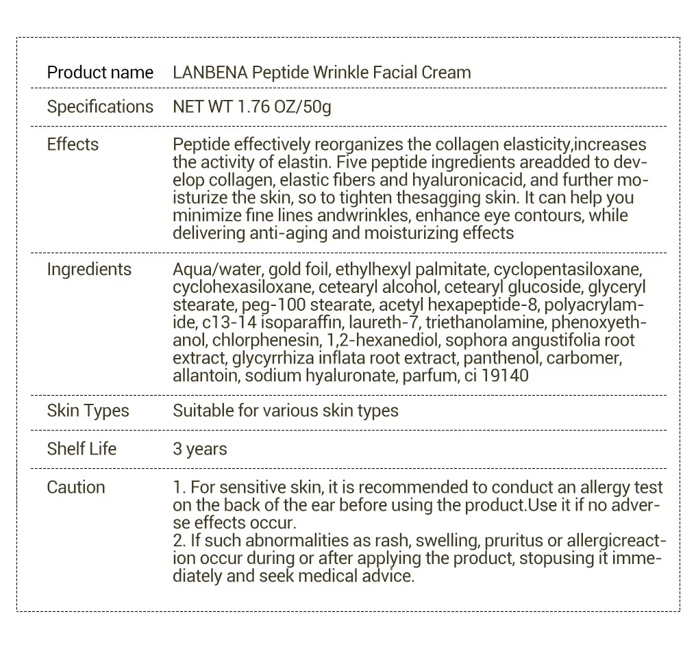 LANBENA 50 г пептид против морщин крем для лица осветление морщин декрет отбеливание морщин лифтинг Укрепляющий Лечение Акне против старения